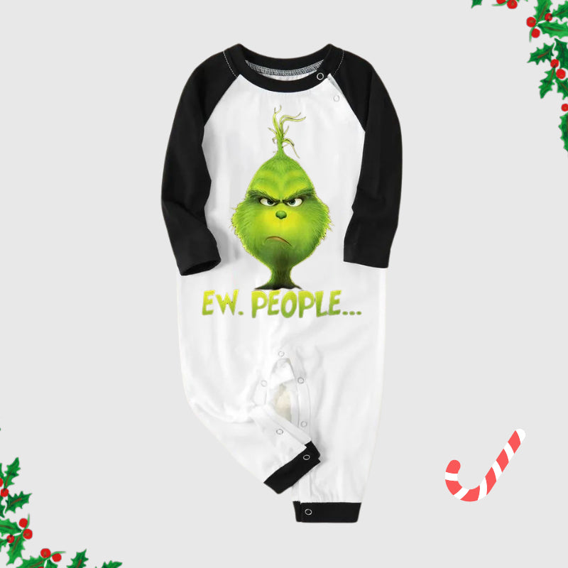 Christmas Cute Cartoon And 'Ew.People...' Letter Print Family Matching Raglan Long-sleeve Pajamas Sets