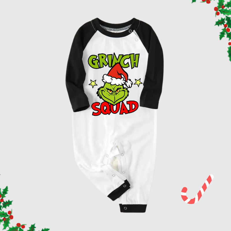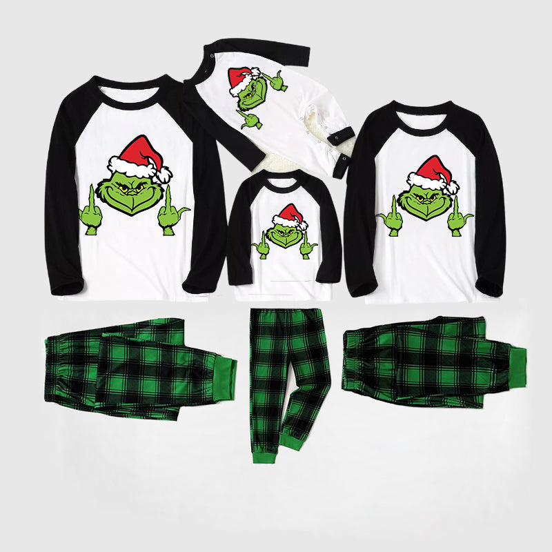 Christmas Cartoon Face and Text Print Black Long Sleeve Top with Green and Black Plaid Family Matching Pajamas