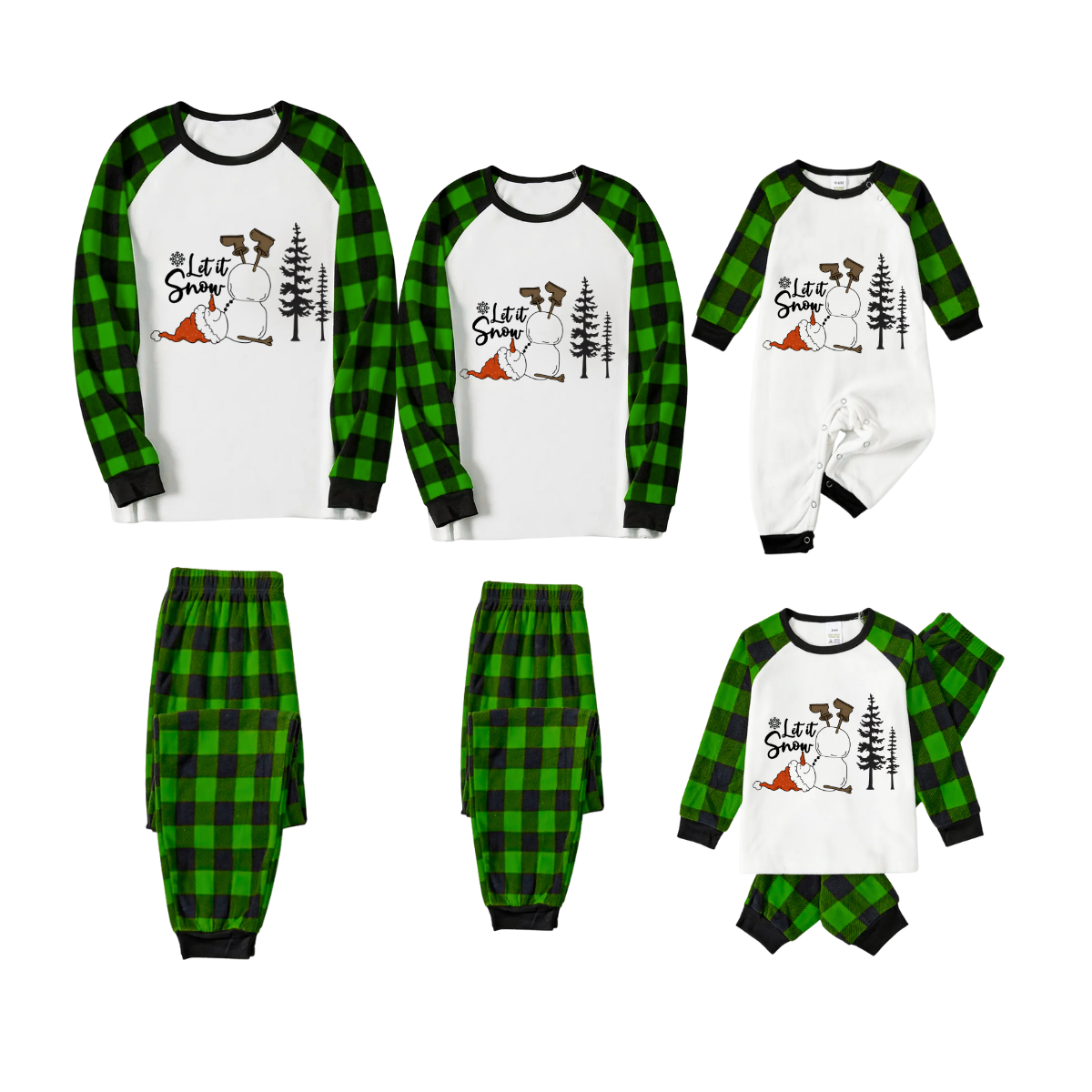 Let it Snow Plaid Family Pajamas - Green Buffalo Check