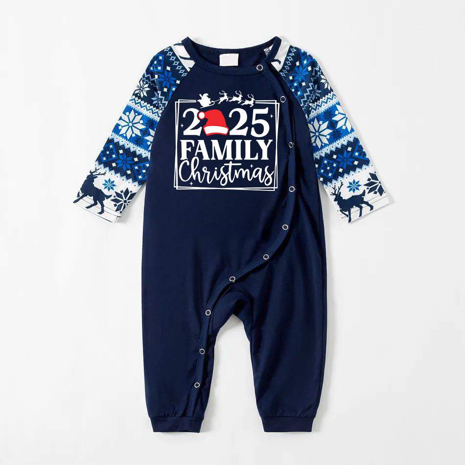 "Family Christmas 2025 " Text Print Blue Family Matching Pajamas