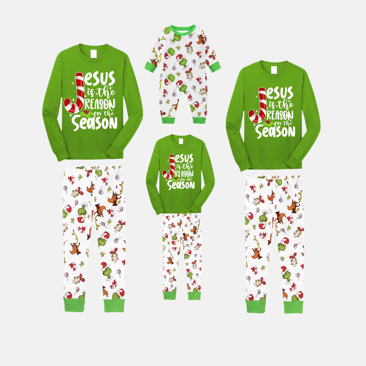Grinchy Christmas Cartoon Family Pajamas - Green