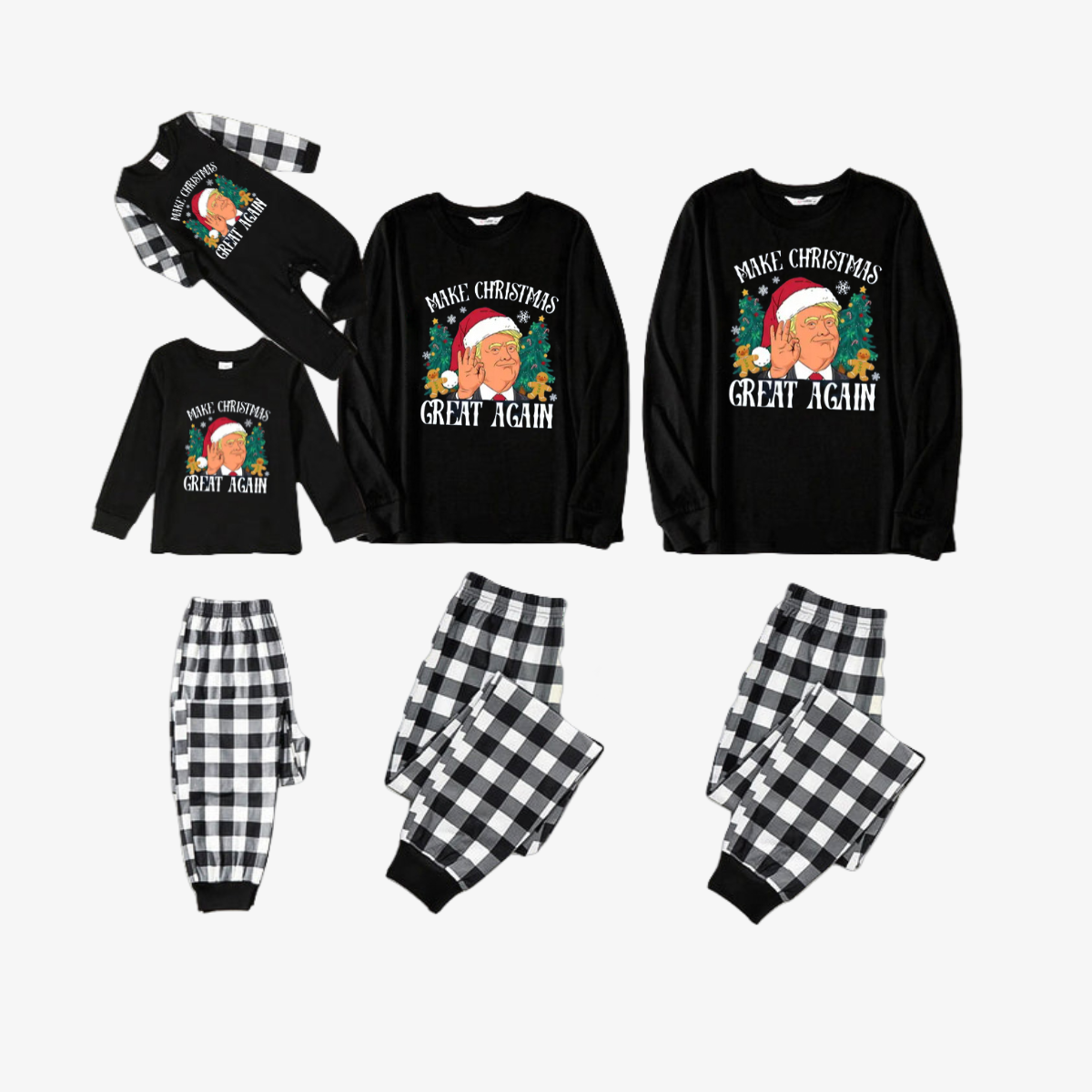 "MERRY CHRISTMAS GREAT AGAIN" Letter Printed Black and White Plaid Family Pajamas Sets