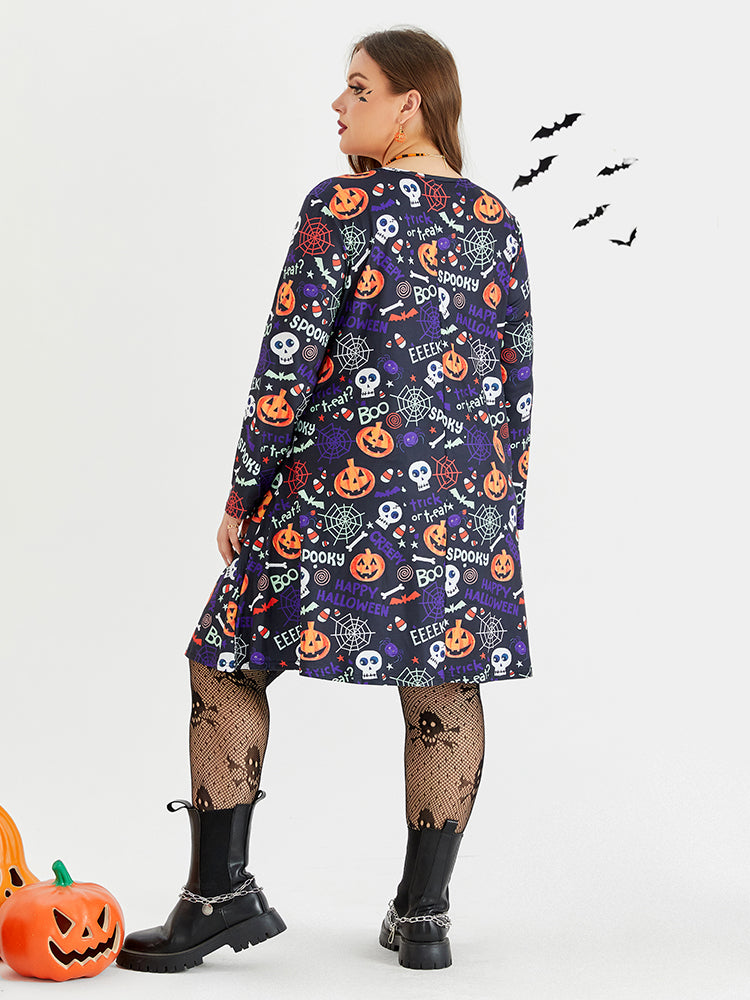 Halloween Print Flounce Sleeve Pocket Ruffle Trim Dress
