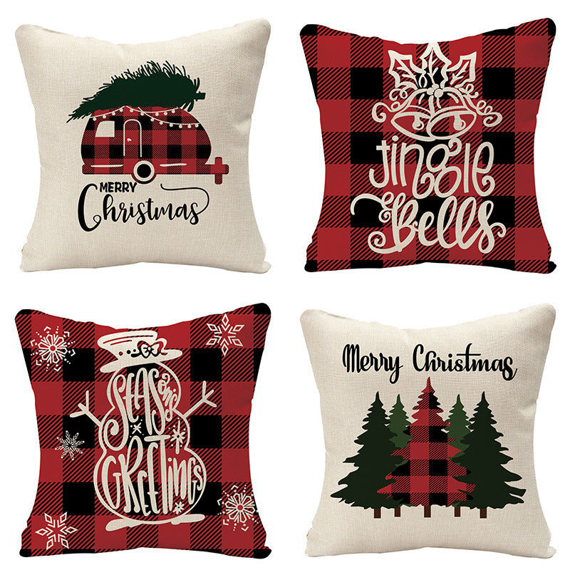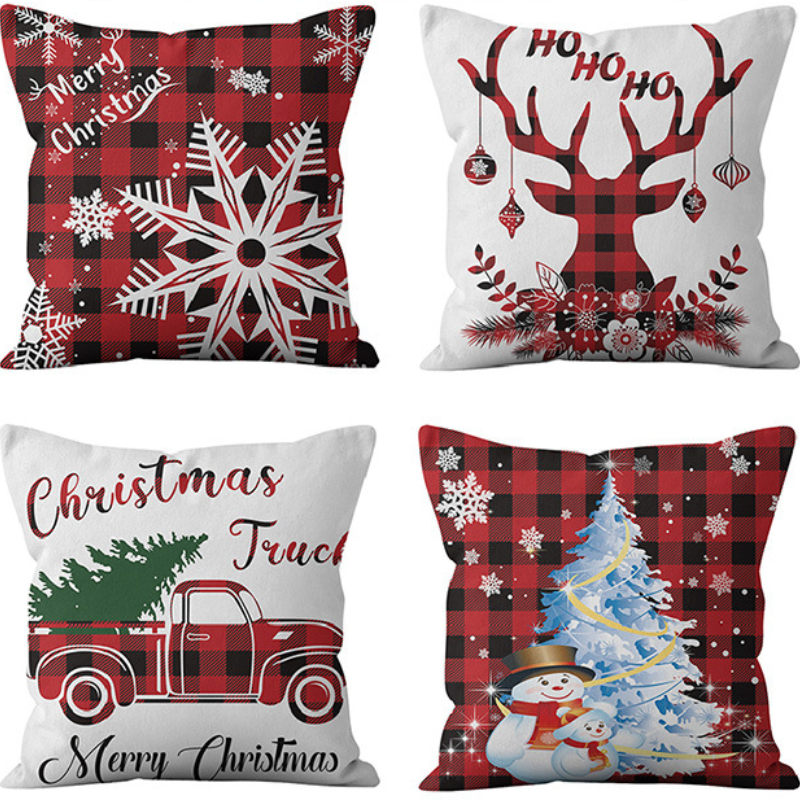 Christmas HO HO HO Antlers Snowflake Tree Snowman Deer Plaid Pillowcase YMD115