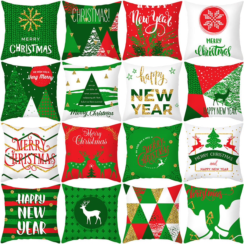 Christmas Elk Snowflake Tree Printed Red Green White Pillow Case Office Cushion Cover TPR304