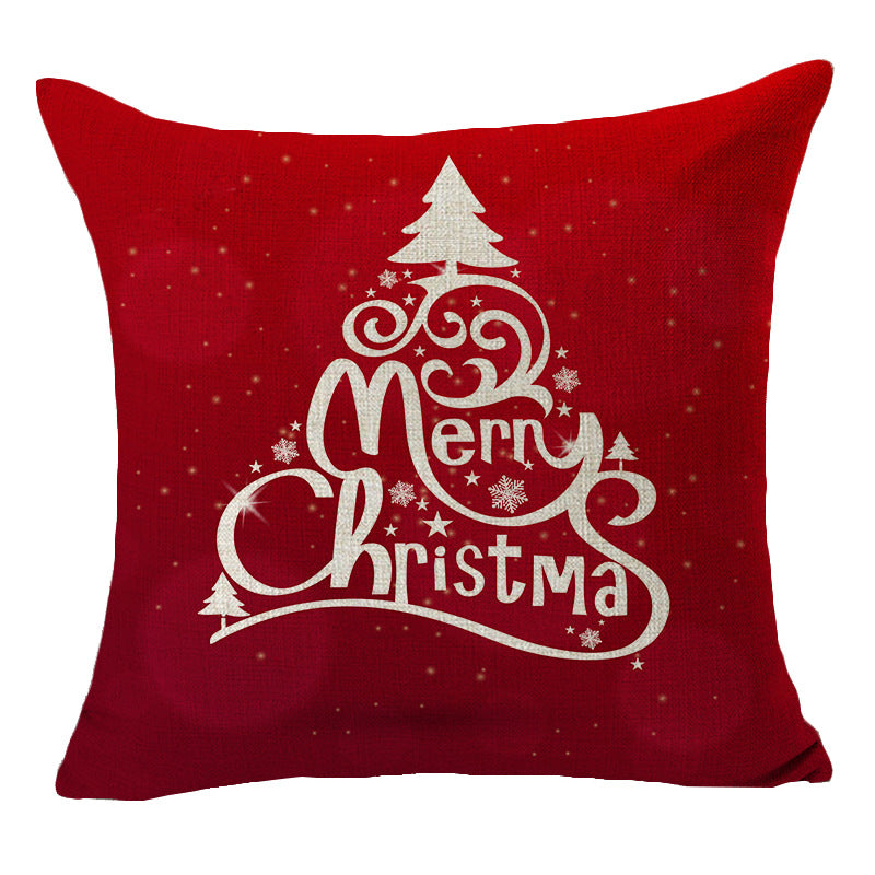 Merry Christmas Snowflake Tree Red Beige Linen Pillowcase Holiday Home Decoration Pillow Cover YMD113