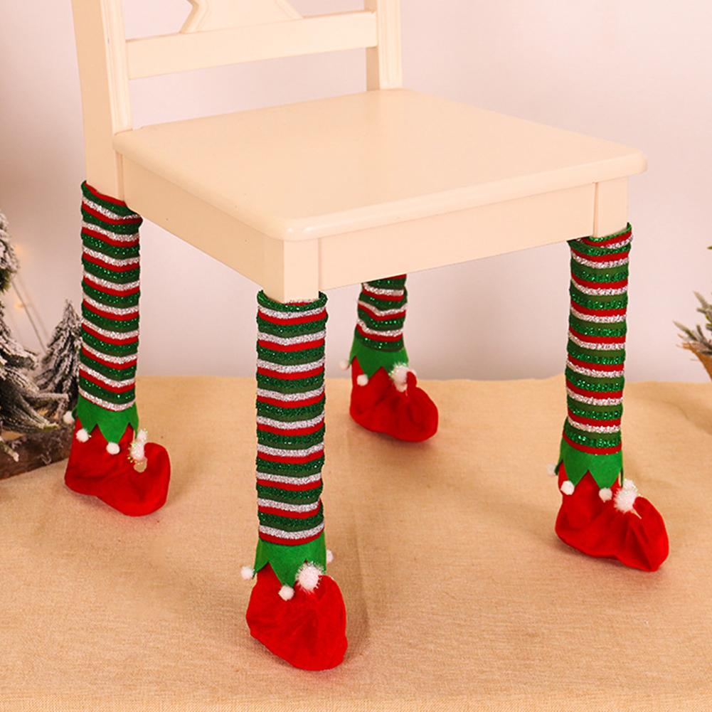 Christmas Decor Elf Red Green Striped Dining Table Leg Chair Foot Protective Cover