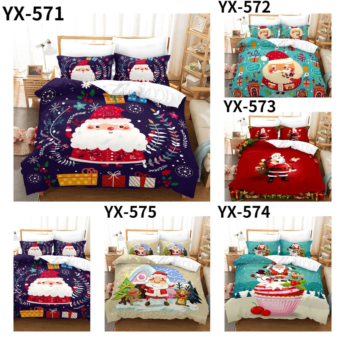 Christmas Santa Claus print Quilt 3 Piece Bedding Set