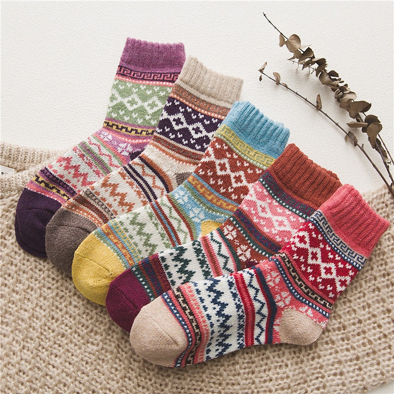 5Pairs/lot New Witner Thick Warm Wool Women Vintage Christmas Socks