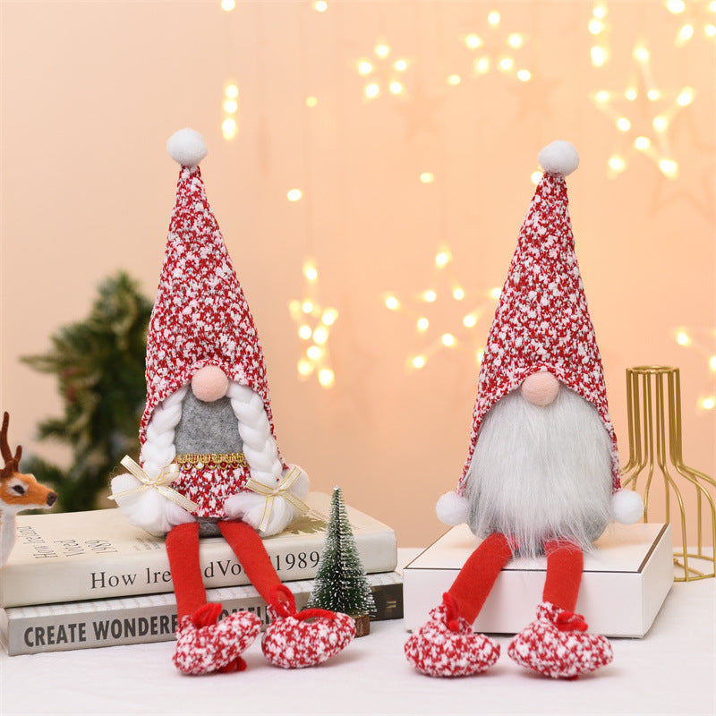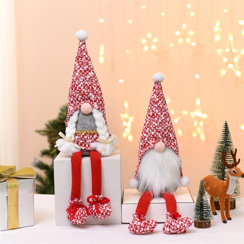 Christmas Decorations Faceless Elderly Plush Doll Wearing Long Knitted Hats with Feet Children Gifts