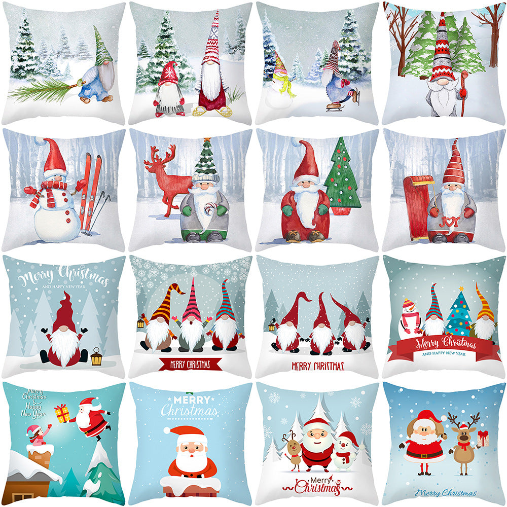 Christmas Faceless Elderly Gnome Santa Snowman Elk Tree Cartoon Print Pillowcase TPR421