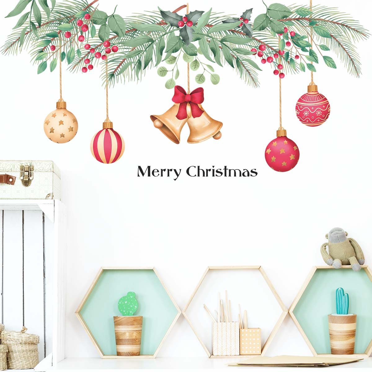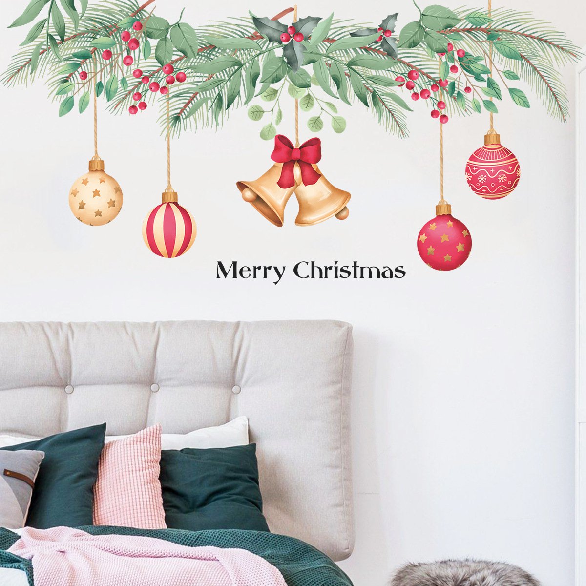 Merry Christmas Bell Ball Mistletoe Wall Sticker Glass Window Door Decoration xmas030