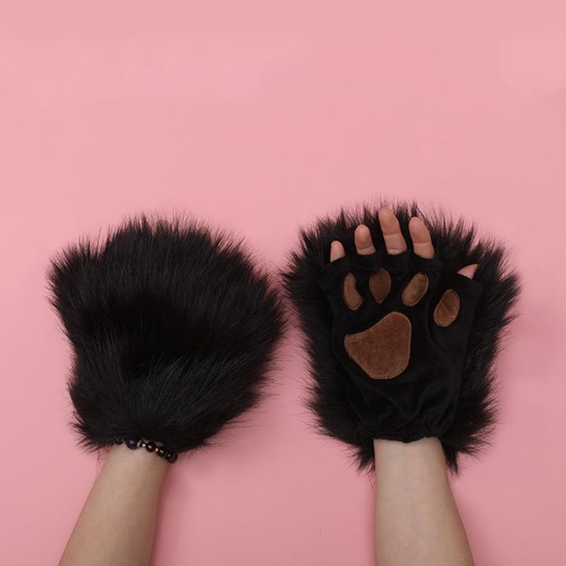 Women's Bear Plush Cat Claw Gloves Winter Cute Kitten Fingerless Mittens Christmas Halloween