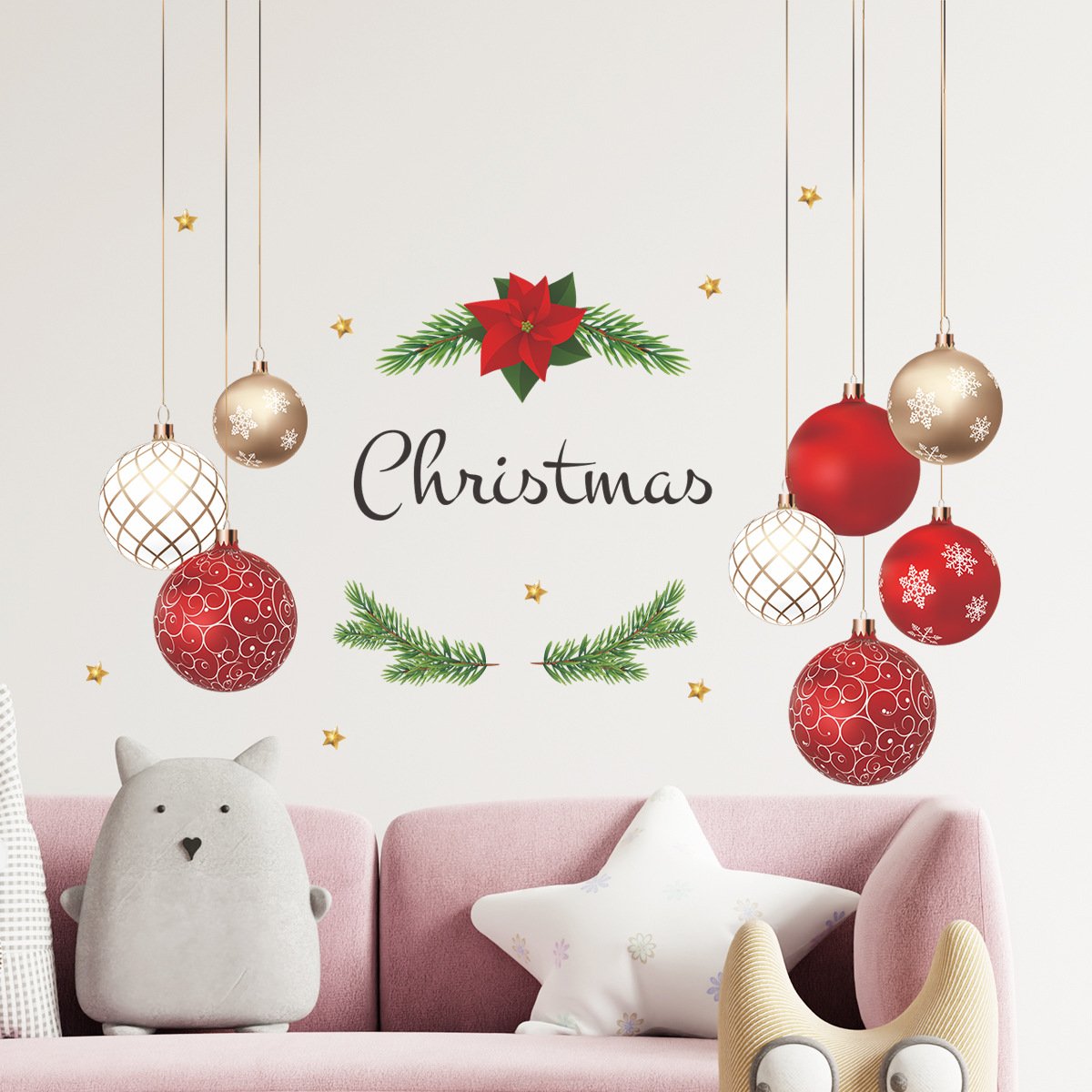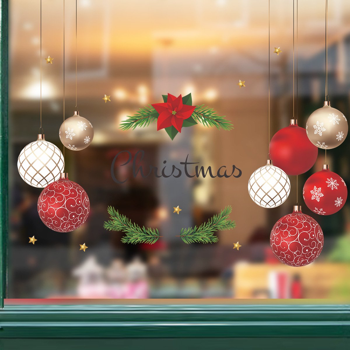 Christmas Red Golden Holiday Balls Ornaments Stars Mistletoe Stickers Window Glass Door Decoration xmas019