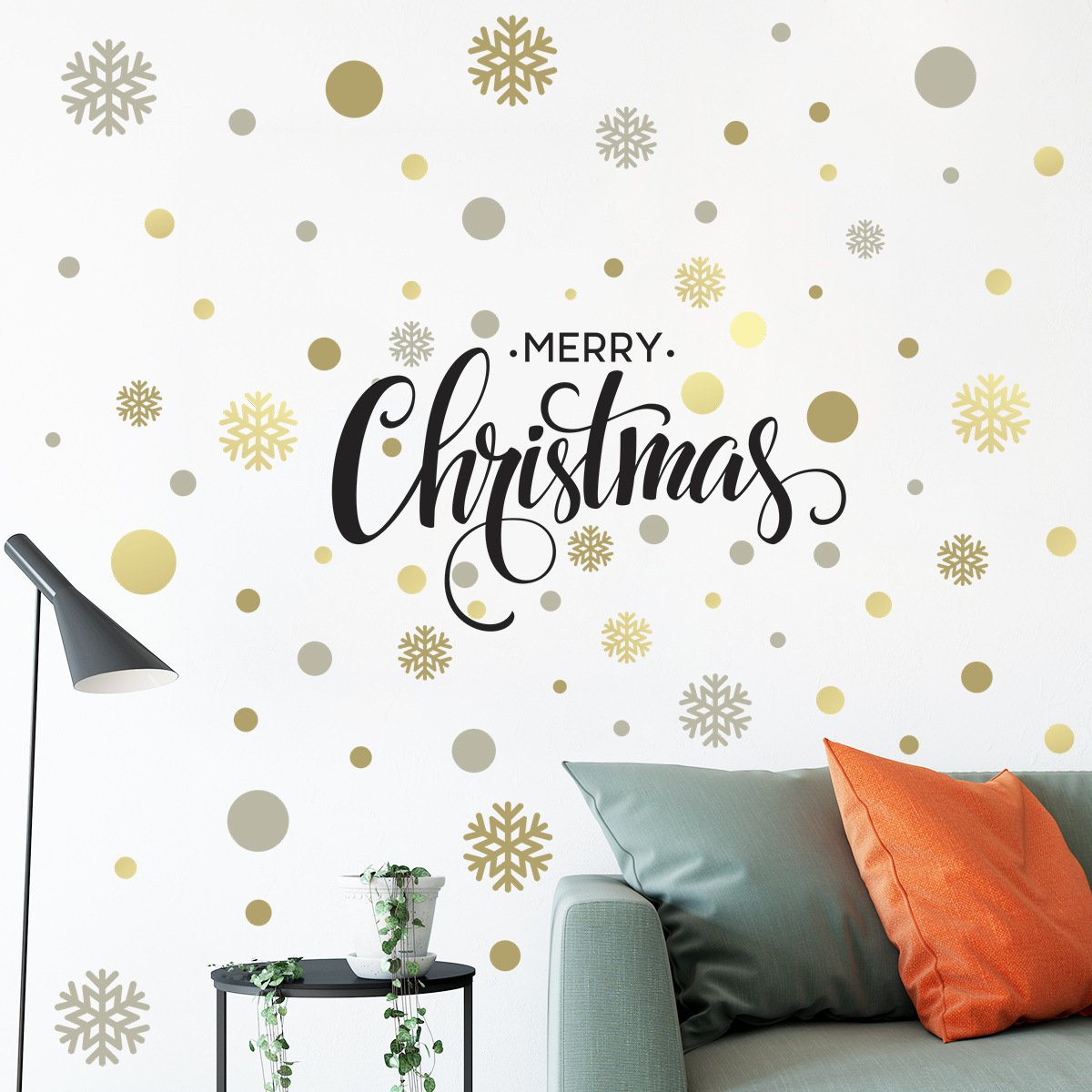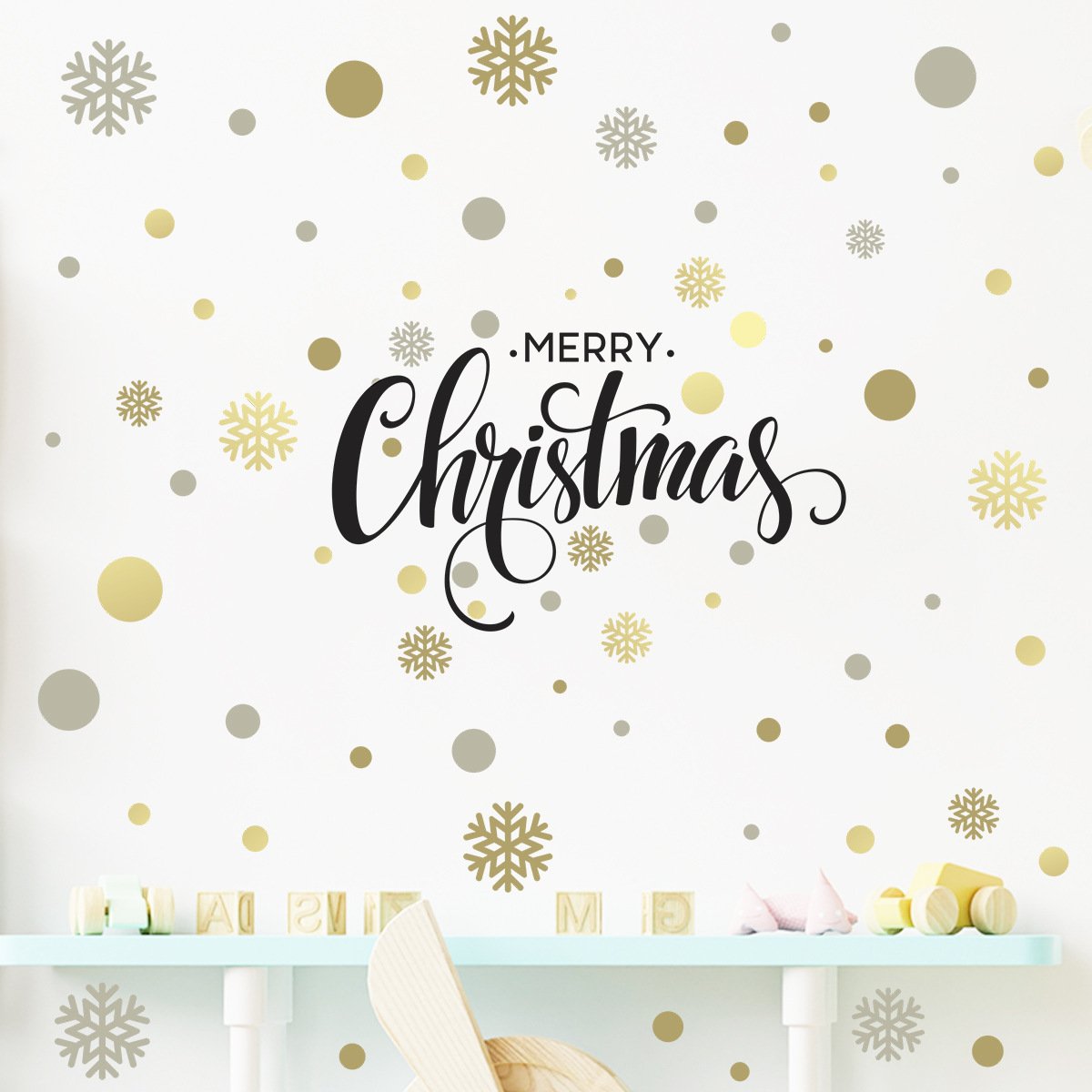 Merry Christmas Golden Silver Snowflake Dot Wall Sticker Window Glass Decoration xmas006