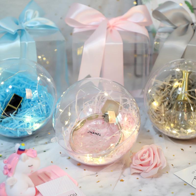 Christmas/Birthday Gift Box Transparent Round Ball with Light String and Raffia LH-057