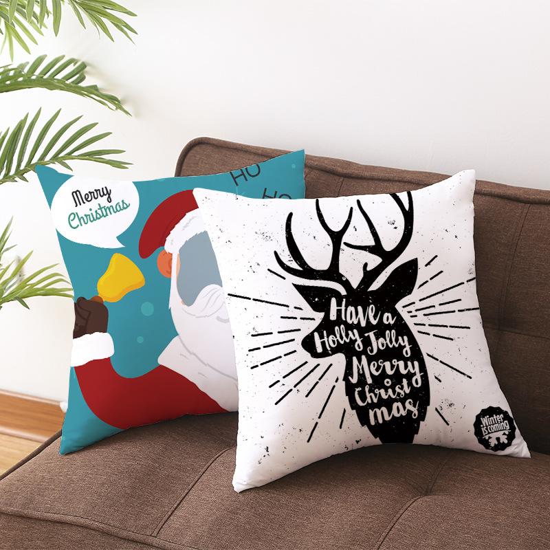 Christmas Oh Deer Letters Santa Elk Hat Tree Bell Printed Pillowcase Office Sofa Household Items TPR303