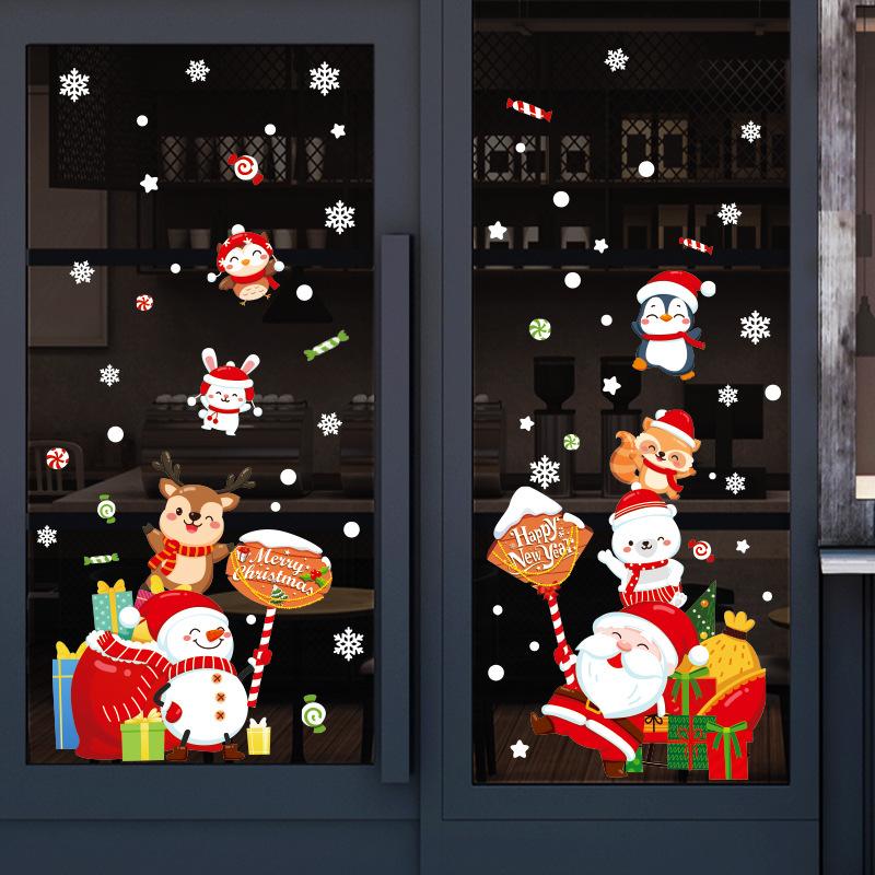 Happy New Year Santa Snowman Elk Fox Rabbit Bird Candy Gift Penguin Window Sticker Christmas Ornaments HT94032