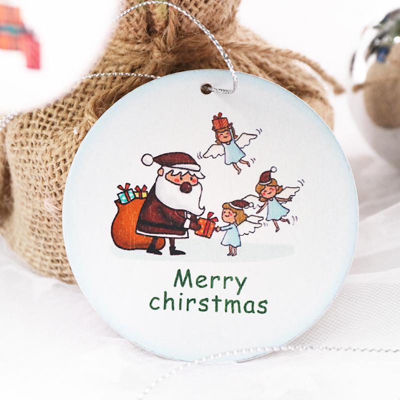 Christmas Tree Ornaments Cartoon Characters and Letters Printed Wooden Pendants 6PCS