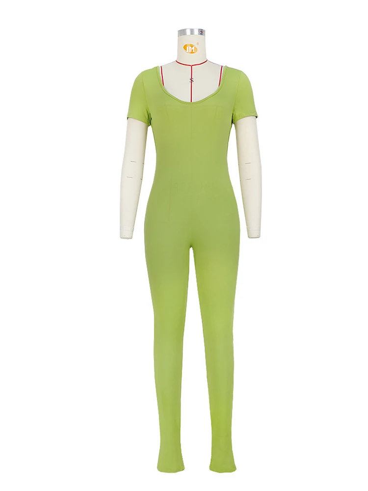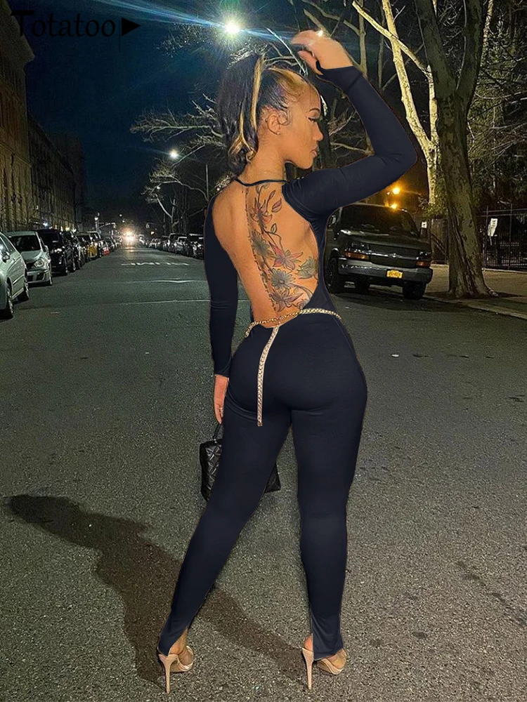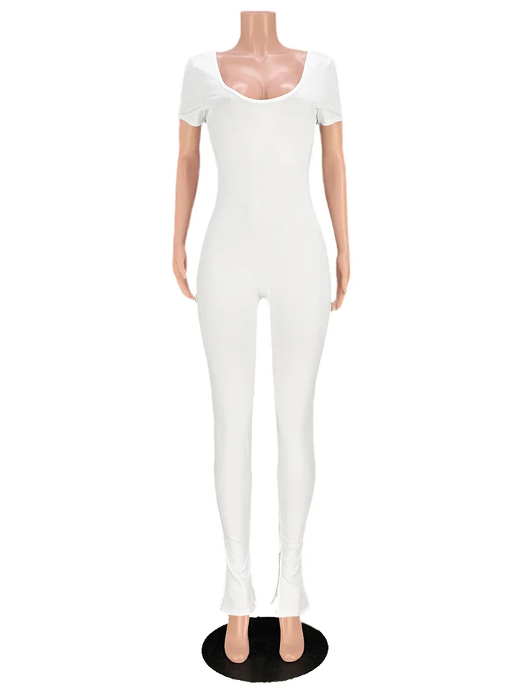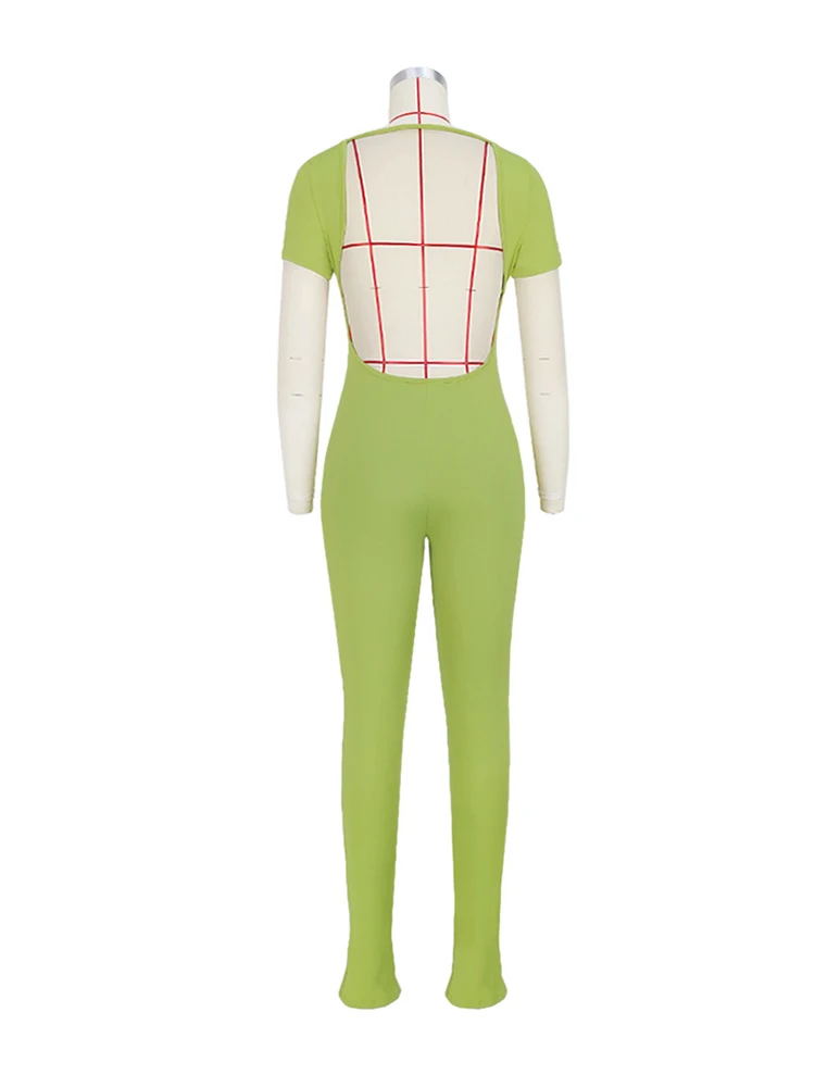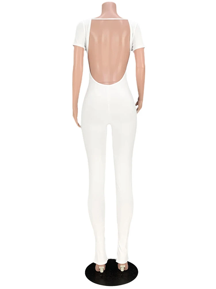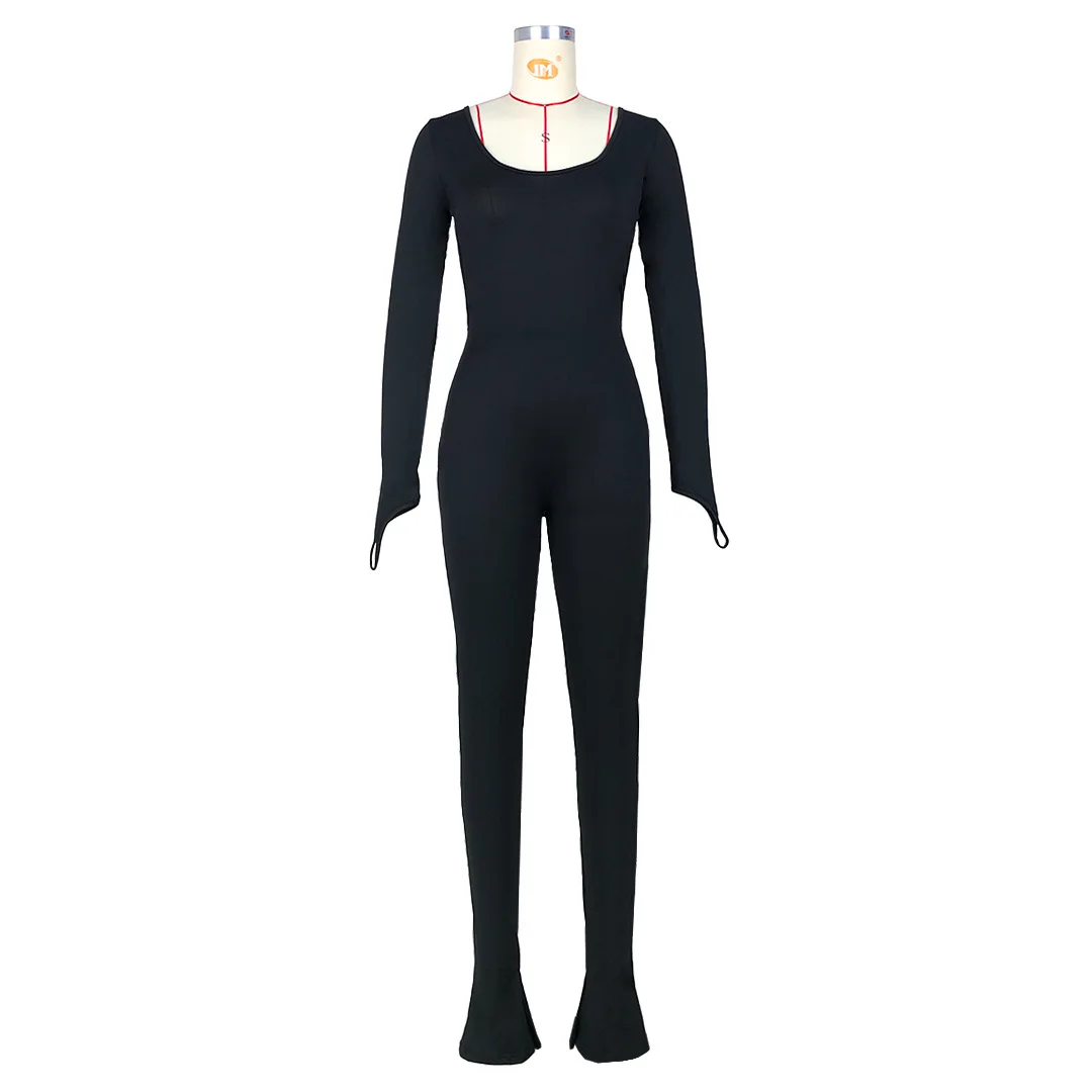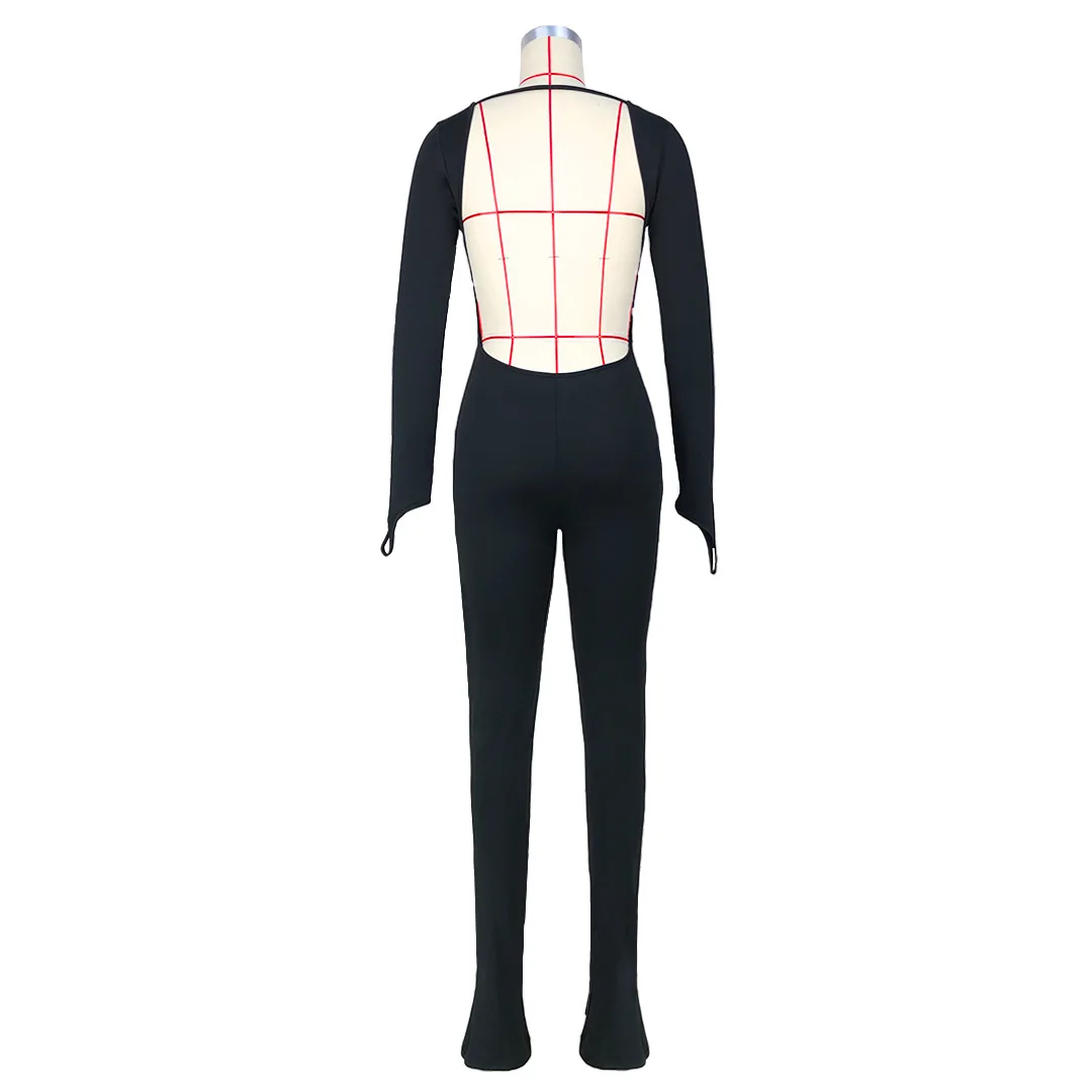Open Back Low Neck Split Long Sleeve Bodycon Jumpsuit