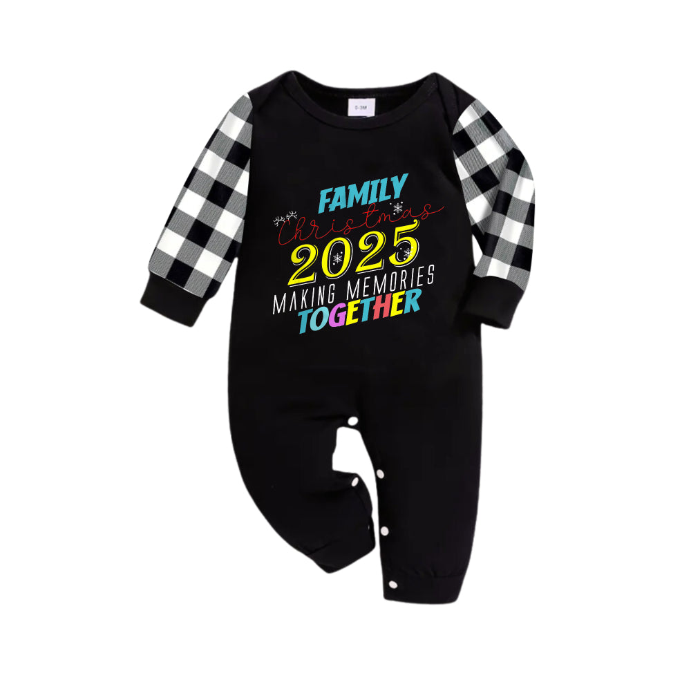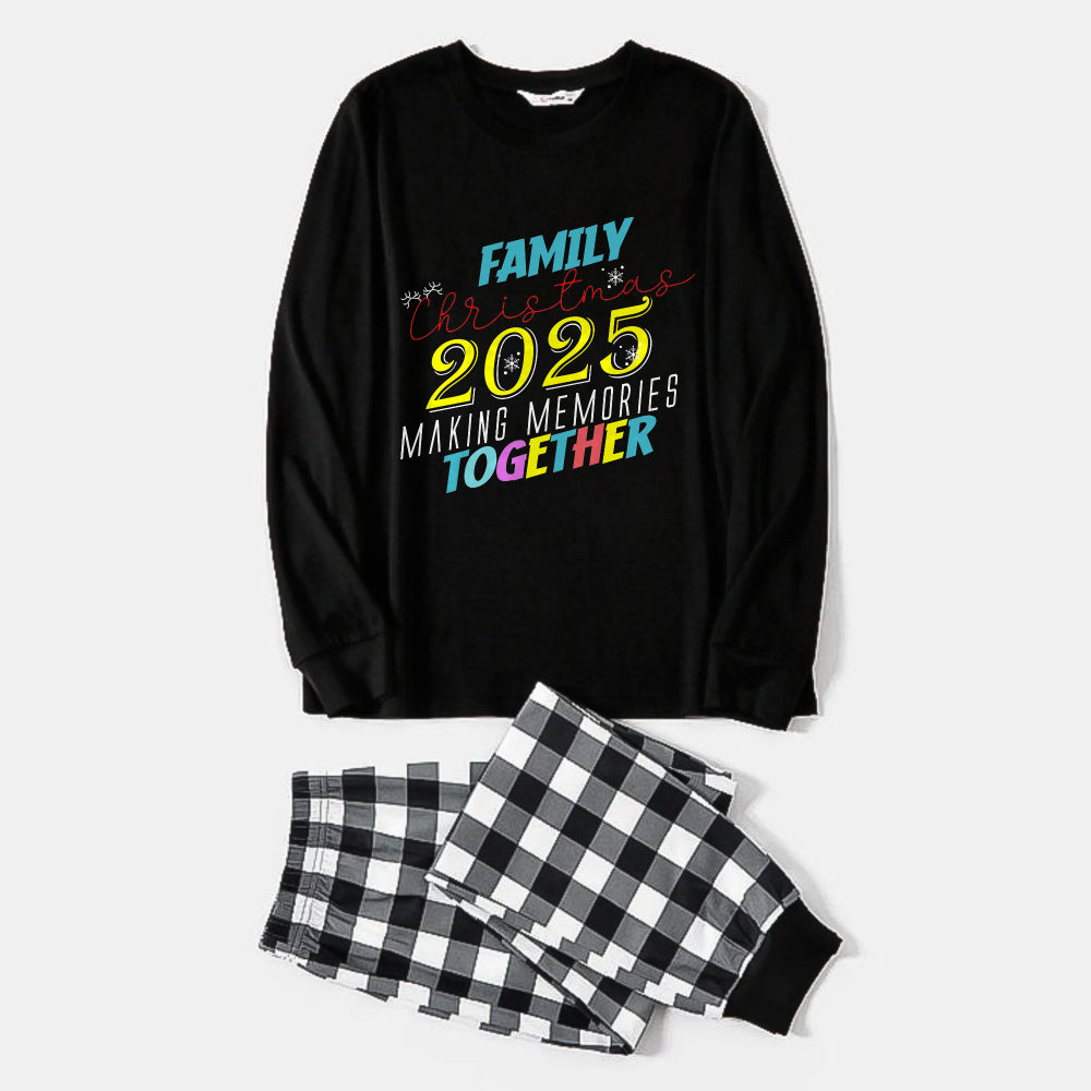 Black and White Plaid Christmas Pajamas Set With "Family Christmas 2025 Making Memories Together" Colorful Text Print