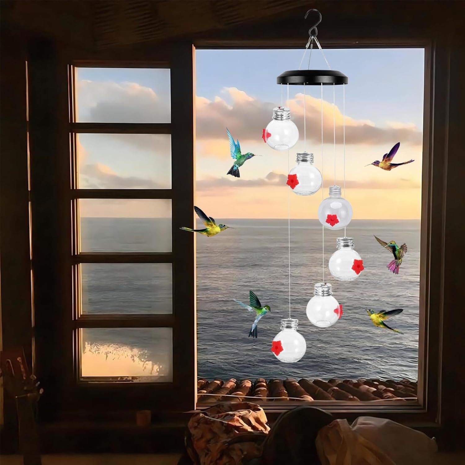 Discover our charming Hummingbird Feeders with integrated Wind Chimes! Our 2024 New Outdoor Bird Feeders not only attract hummingbirds but also keep ants and bees away. Hang them outdoors and enjoy the soothing sound of wind chimes while feeding your feathered friends.