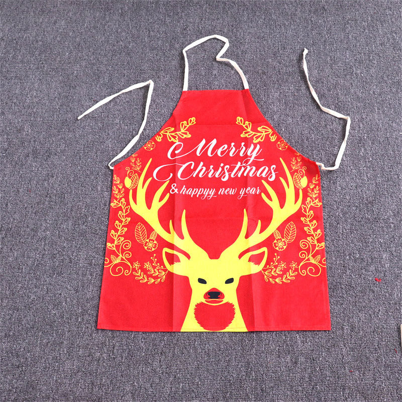 Christmas Decoration Santa Claus/Reindeer Printed Red Cloth Apron Restaurant Bar Party Decor