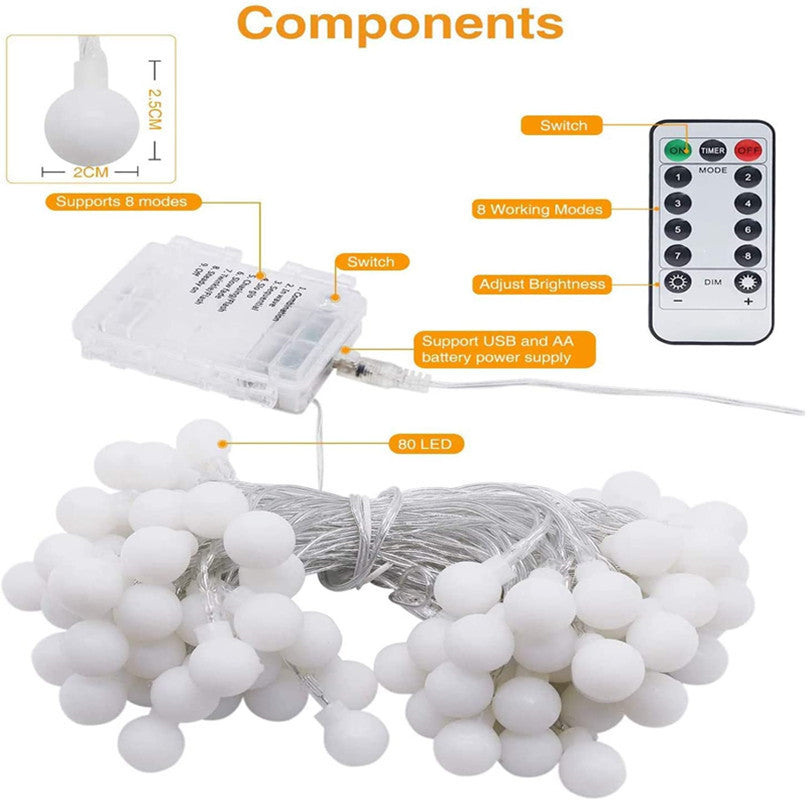Christmas Decoration Small Round Ball LED Light String 50PCS with Waterproof Battery Box/Solar Panel