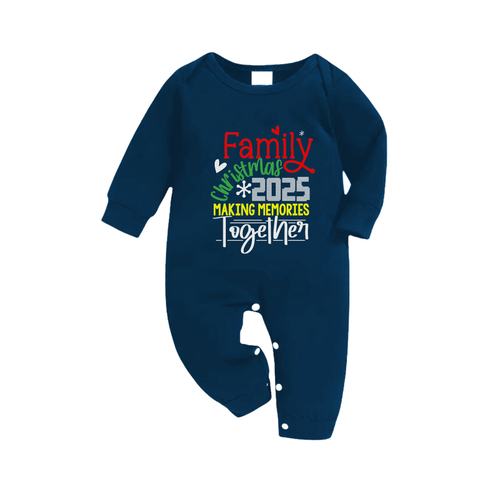 Christmas Family Matching Pajamas-Navy & Sky Blue Plaid Pjs Set with "Family Christmas 2025 Making Memories Together" Artistic Font Print