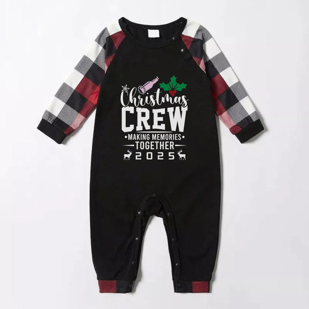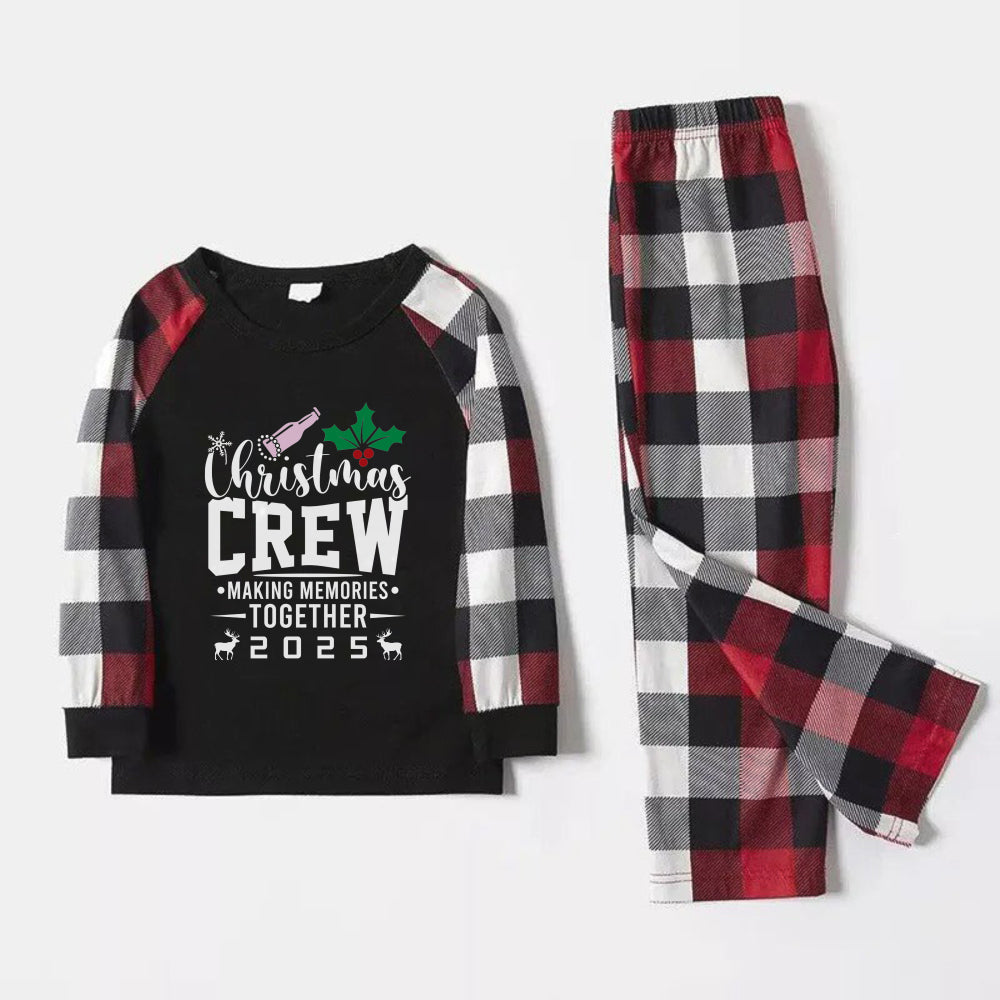 Christmas Family Matching Pajamas-Red and Gray Plaid Pjs set with “Christmas Crew” Artistic Font Print