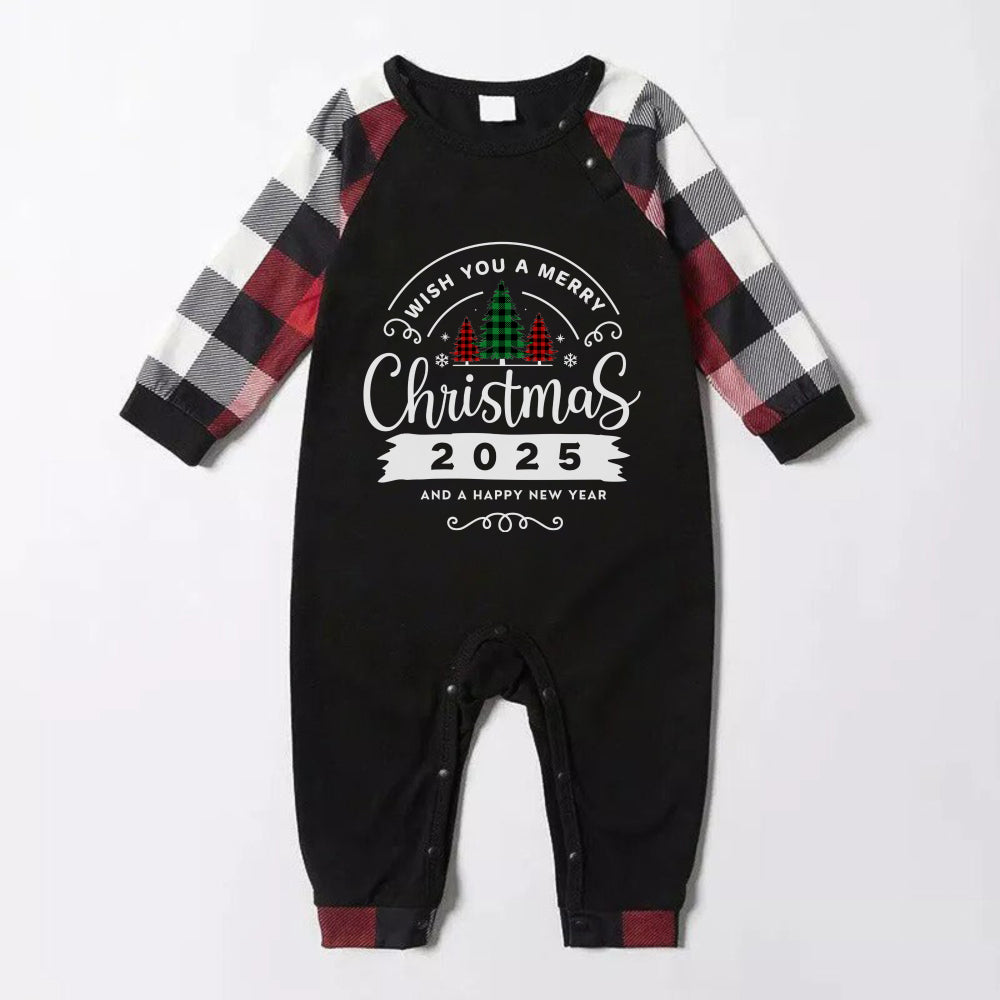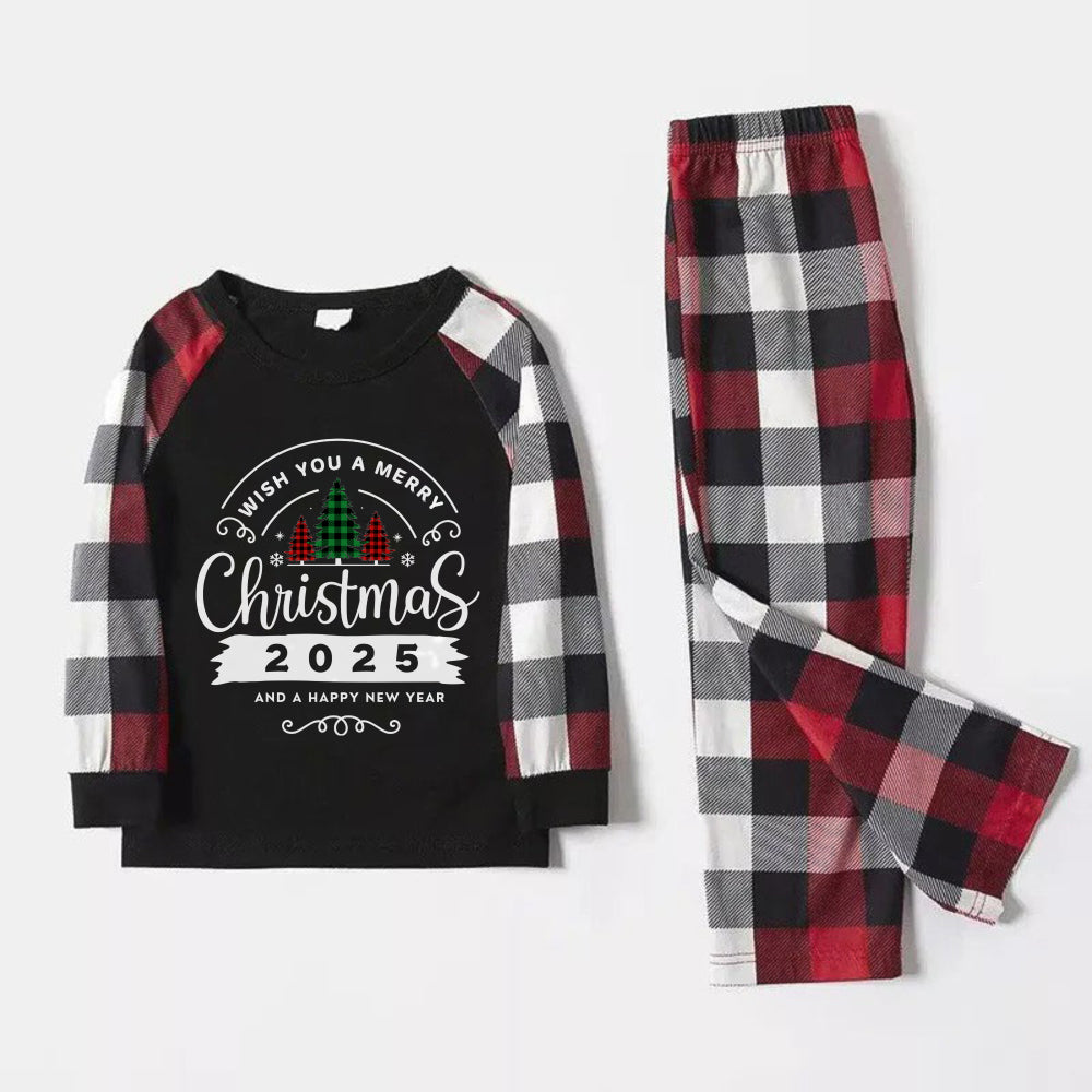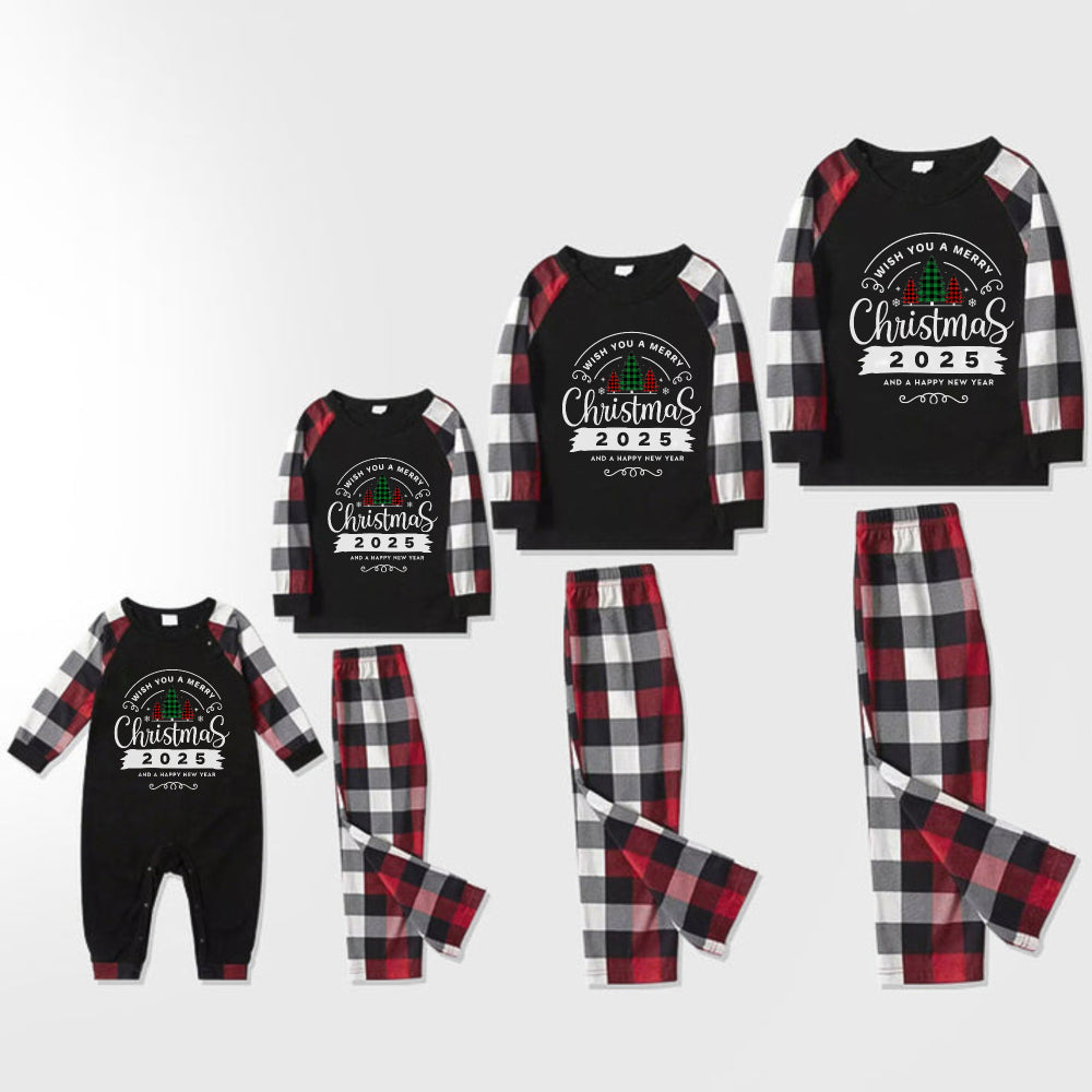 Christmas Family Matching Pajamas-Red and Gray Plaid Pjs set with “Wish You A Merry Christmas” Print