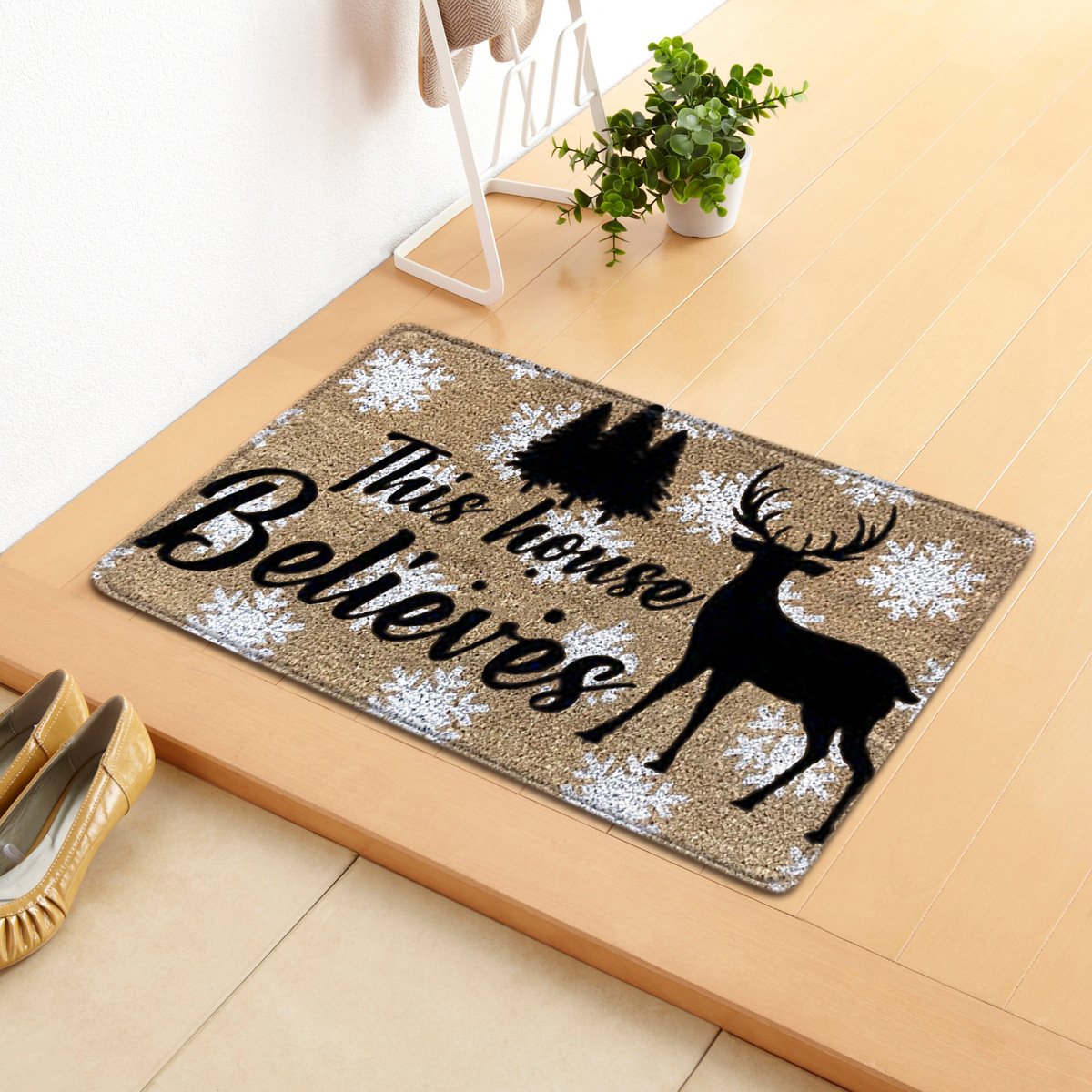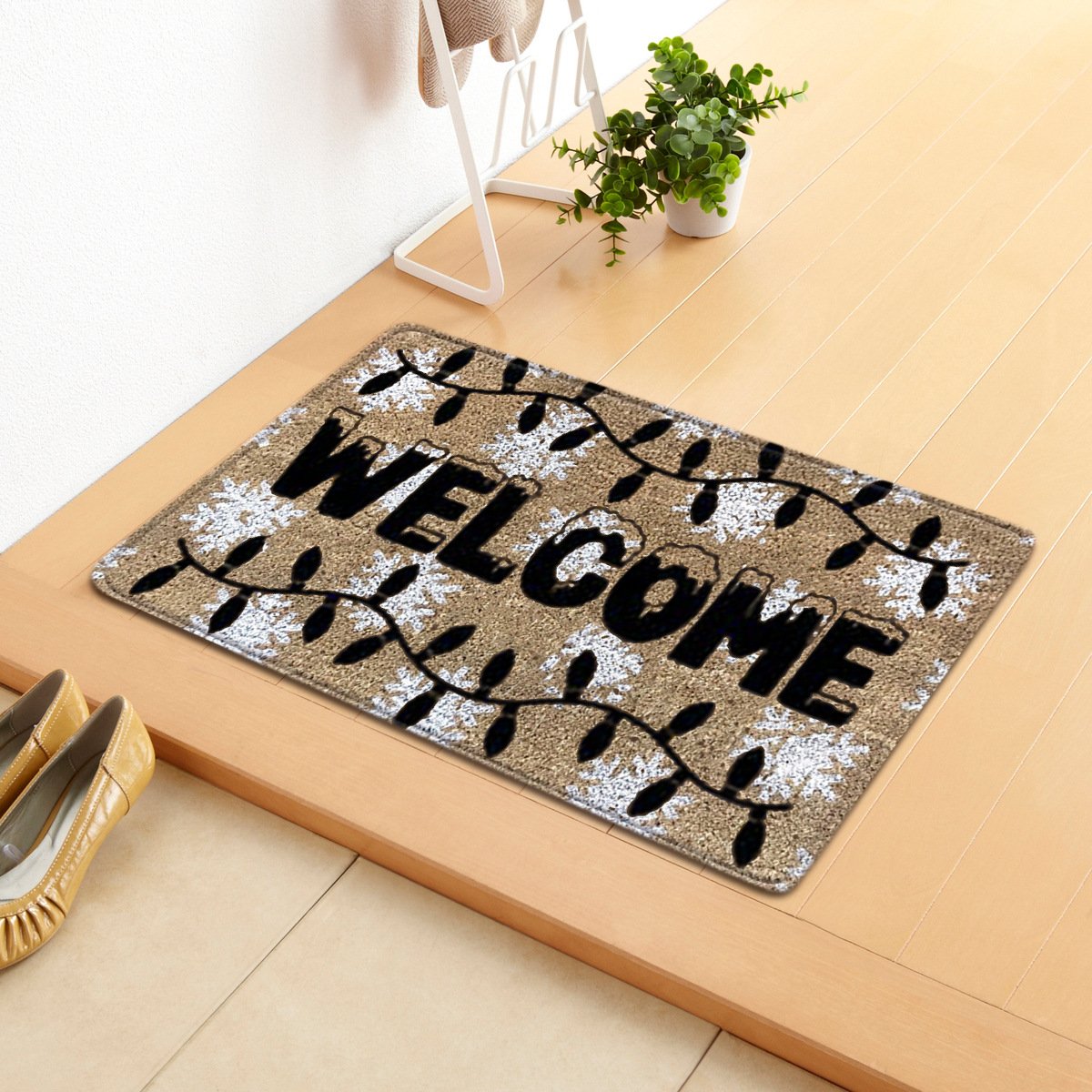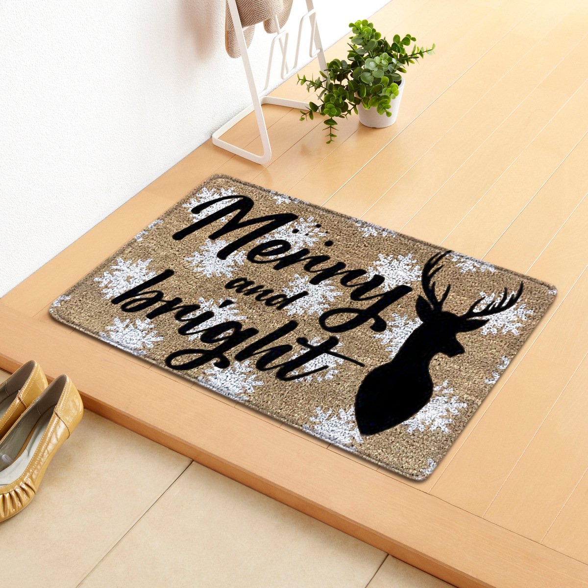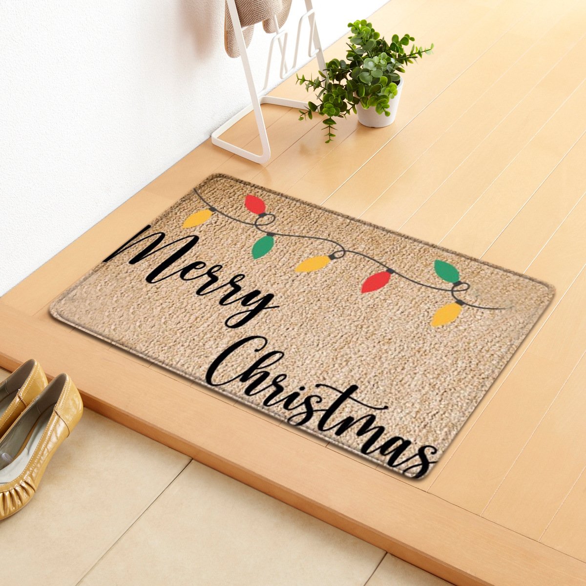 Christmas Letter Santa Sleigh Elk Tree Gift Light String Carpet Door Mat