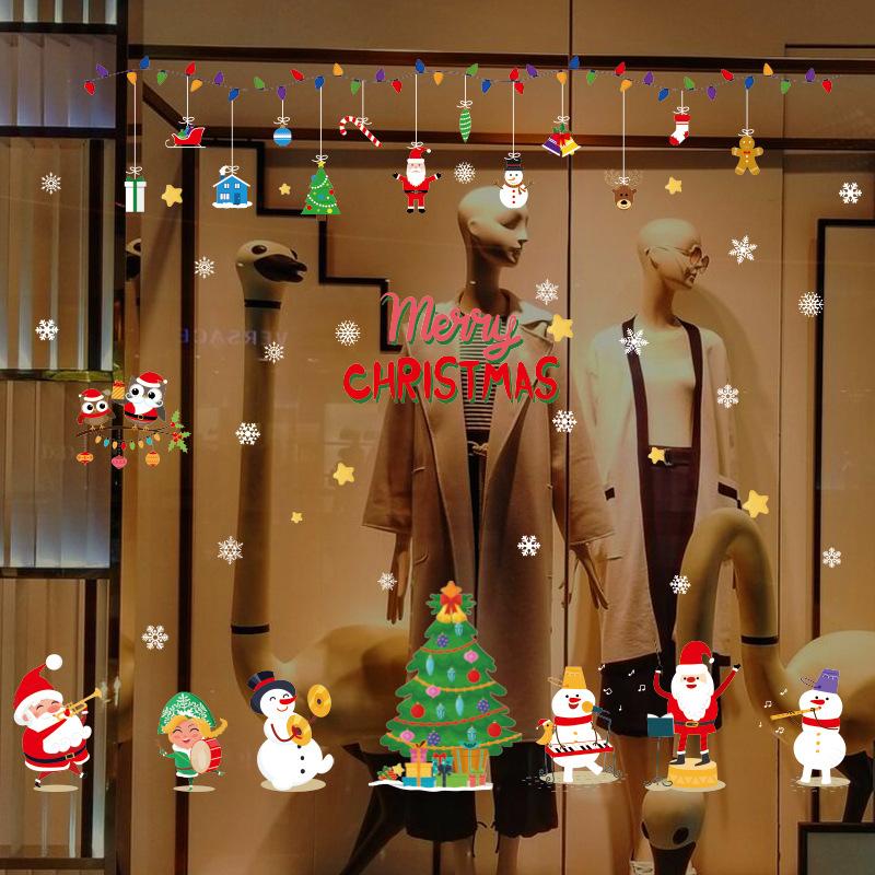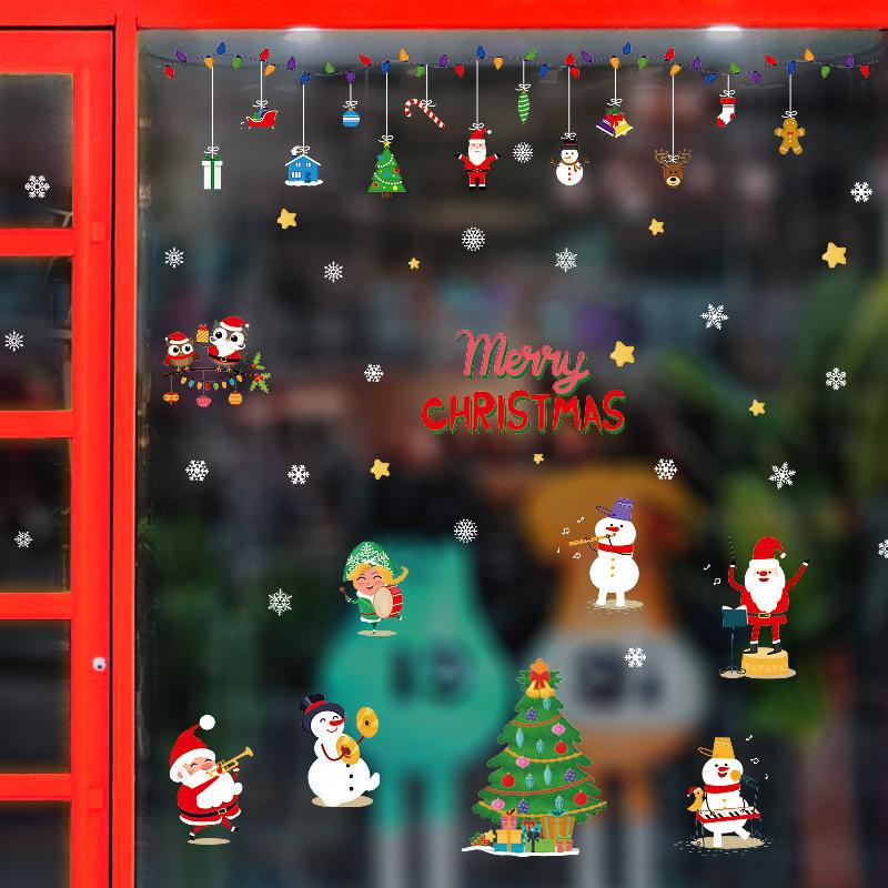Christmas Ornaments Merry Christmas Snowman Gingerbread Man Owl Santa Tree House Gift Window Wall Sticker