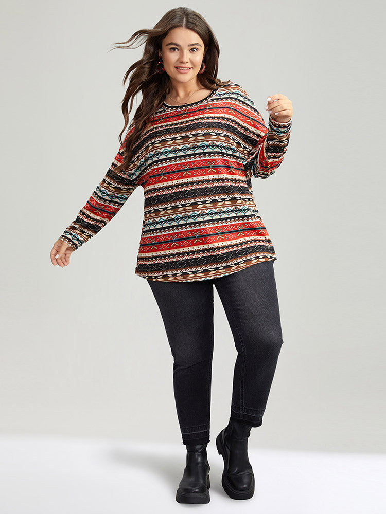 Christmas Print Contrast Crew Neck T-shirt 1007