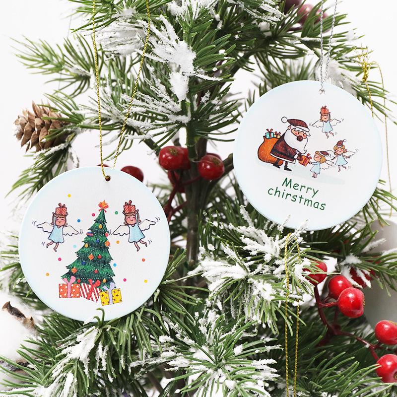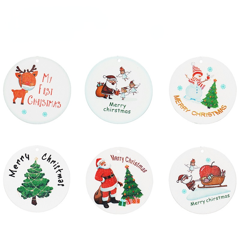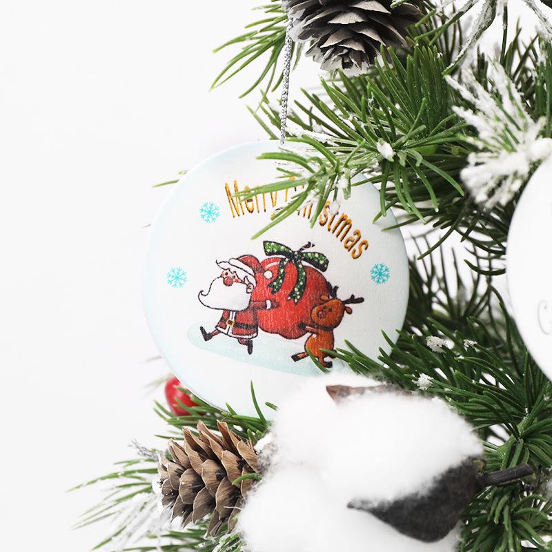 Christmas Tree Ornaments Cartoon Characters and Letters Printed Wooden Pendants 6PCS
