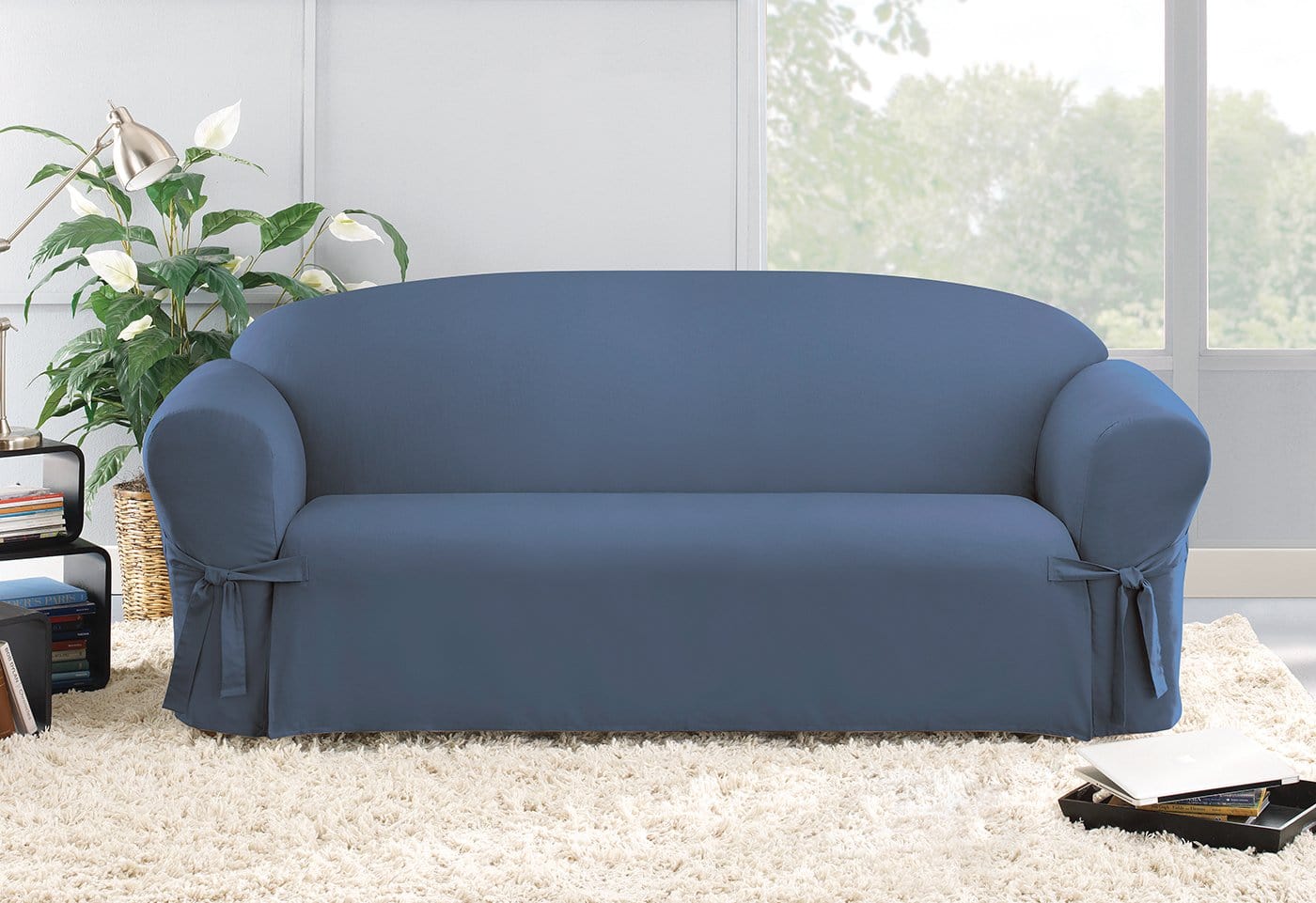 Cotton Duck One Piece Sofa Slipcover | Relaxed Fit | Corner Ties | 100% Cotton | Machine Washable Rec