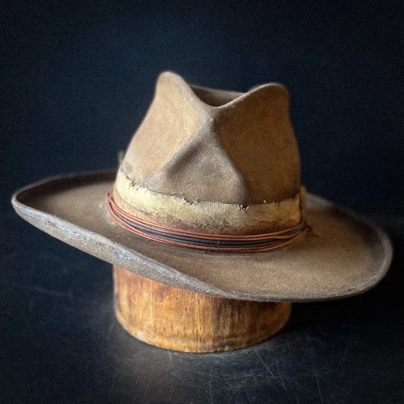 "Distressed Fedora Rowdy Captain" is handcrafted, hand-dyed and hand-distressed. That means no two hats have the same color or character, making each hat truly one of a kind. Unique to each hat.