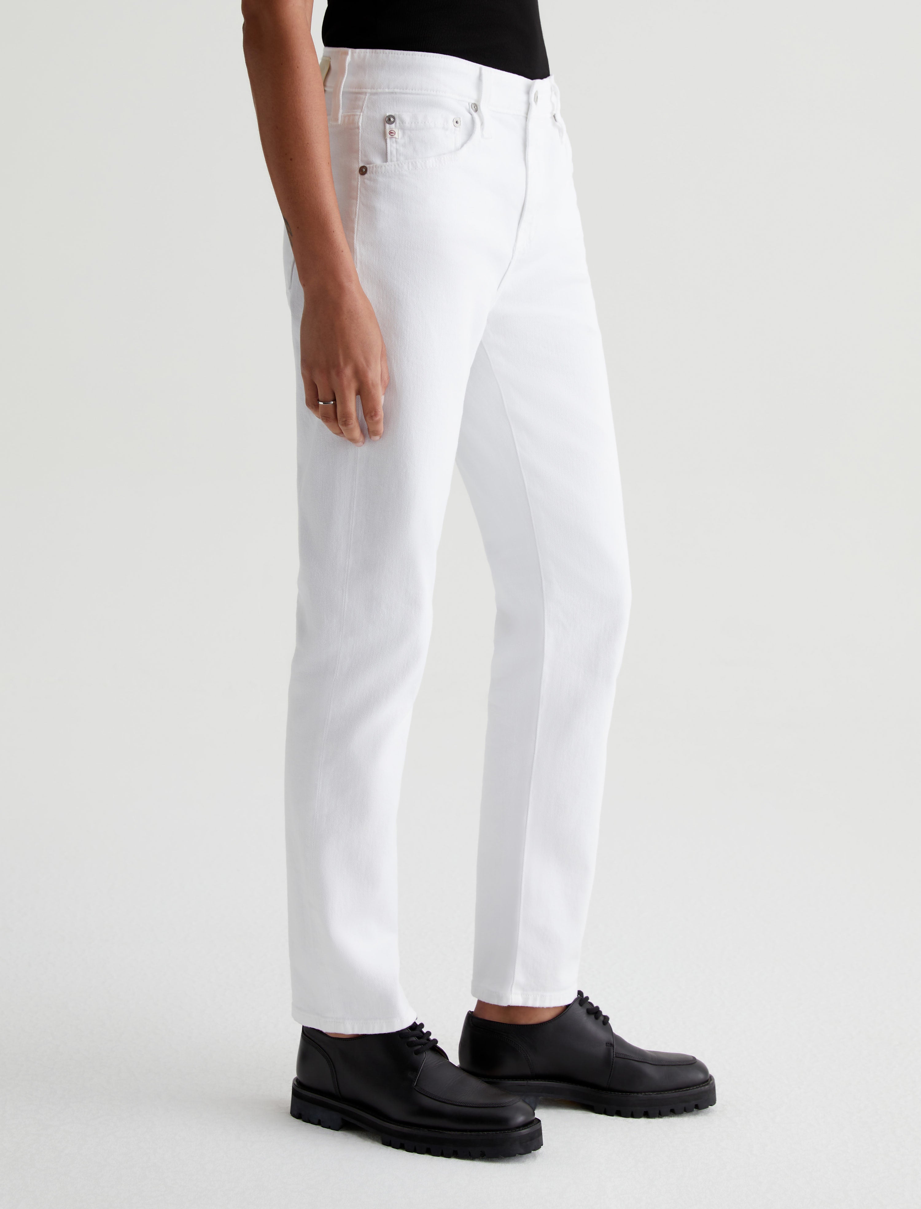 The Ex-Boyfriend Slim Jean is a slouchy slim style for women, offered here in clean, fresh white. Made from our exclusive AG Cloud Soft Denim™, this relaxed-fit women's jean comes in 8.7 oz. Hyper Soft White Bull Denim, AG's special left-hand twill fabric that allows the yarns to gently relax and untwist for a luxe, supple feel. It's designed to get even softer the more you wear it. Dual-elastic stretch offers extra comfort and a resilient shape.
