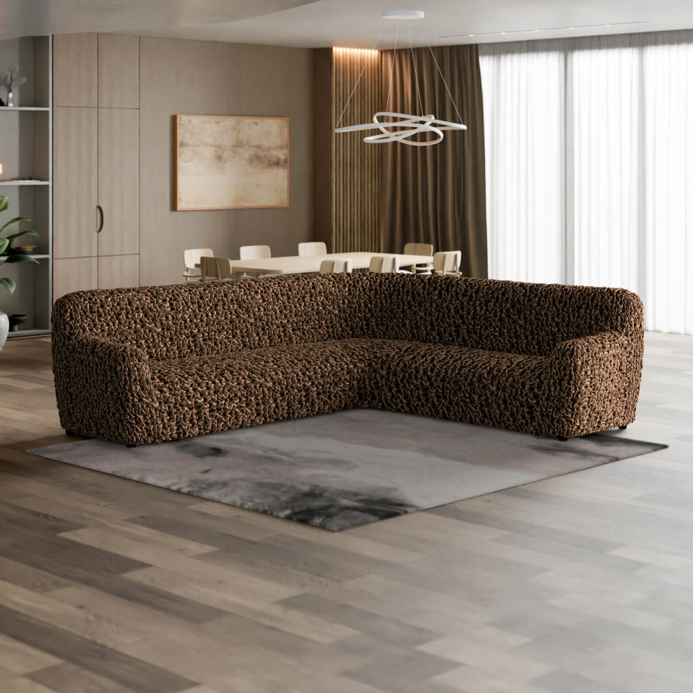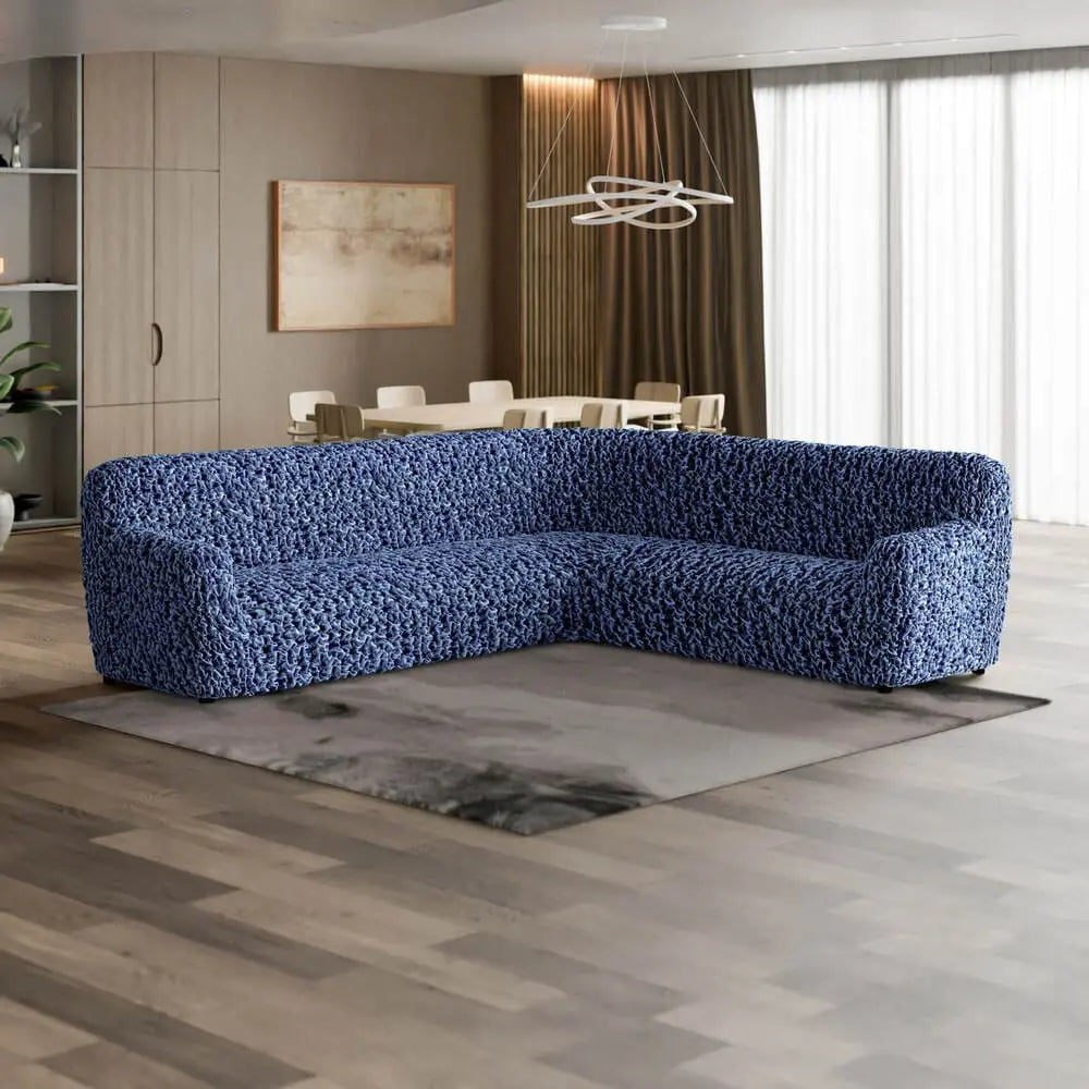 Corner Sectional Sofa slipcover fitting small and large sectionals (see Form-Fit guide in photos). Fitting Corner Sofa 135”- 208” wide (see measuring guide in photos). PLEASE MEASURE BEFORE PURCHASING.