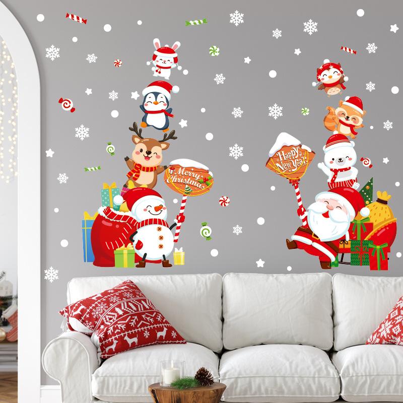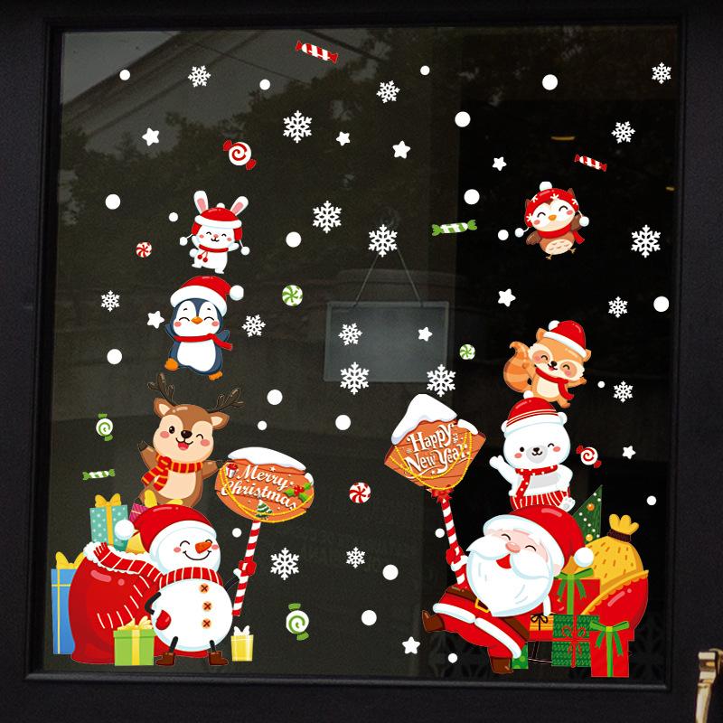 Happy New Year Santa Snowman Elk Fox Rabbit Bird Candy Gift Penguin Window Sticker Christmas Ornaments