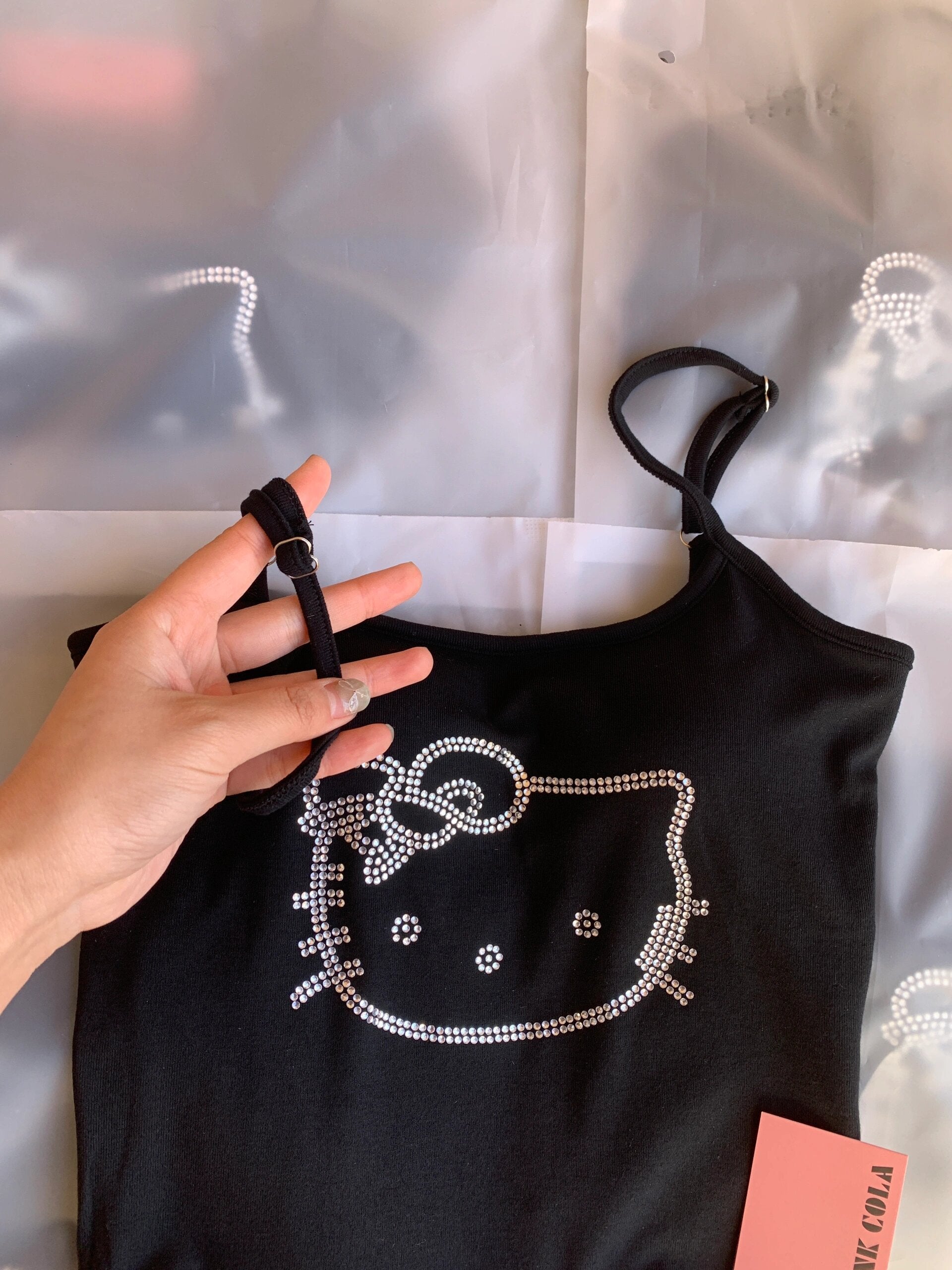 Hellokitty Rhinestone Camisoles Tops with Built in Padded Bra Basic Breathable Tank Top