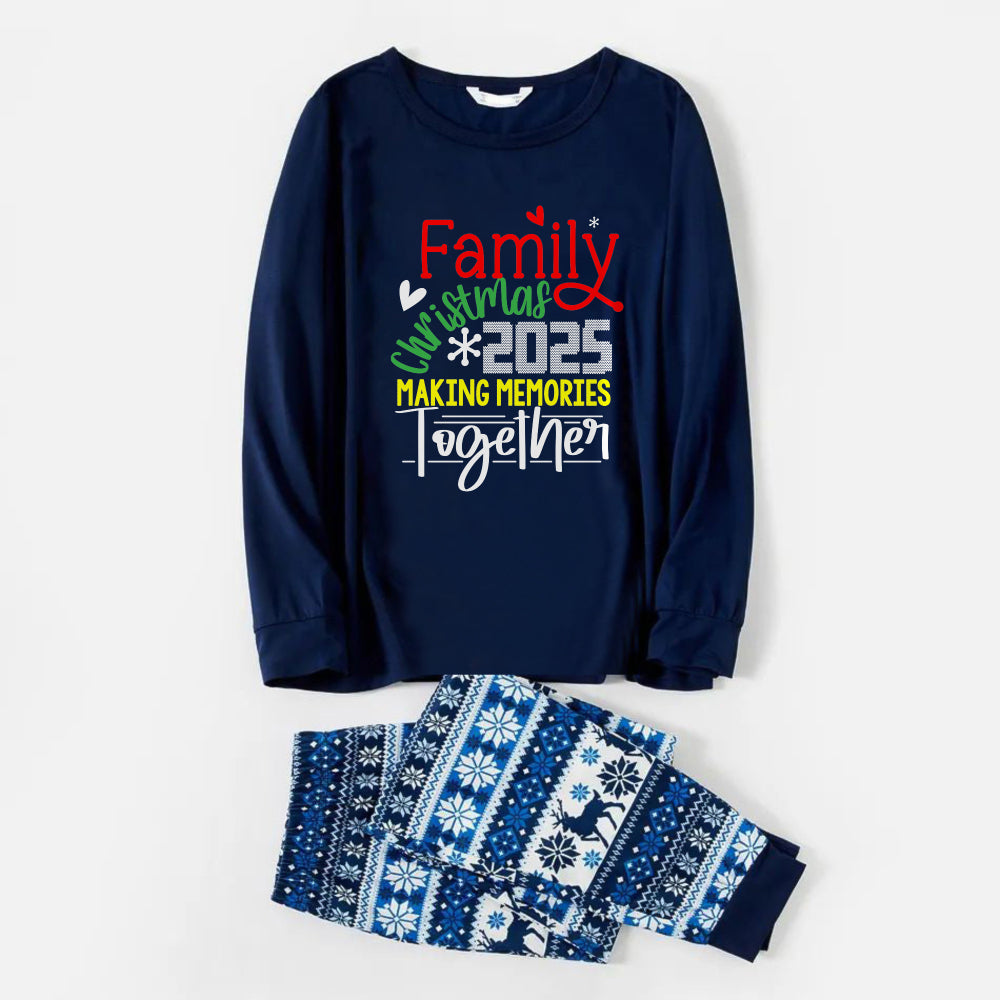 Joyful Blue Christmas Pajamas Set Featuring Christmas Cheer Text Prints