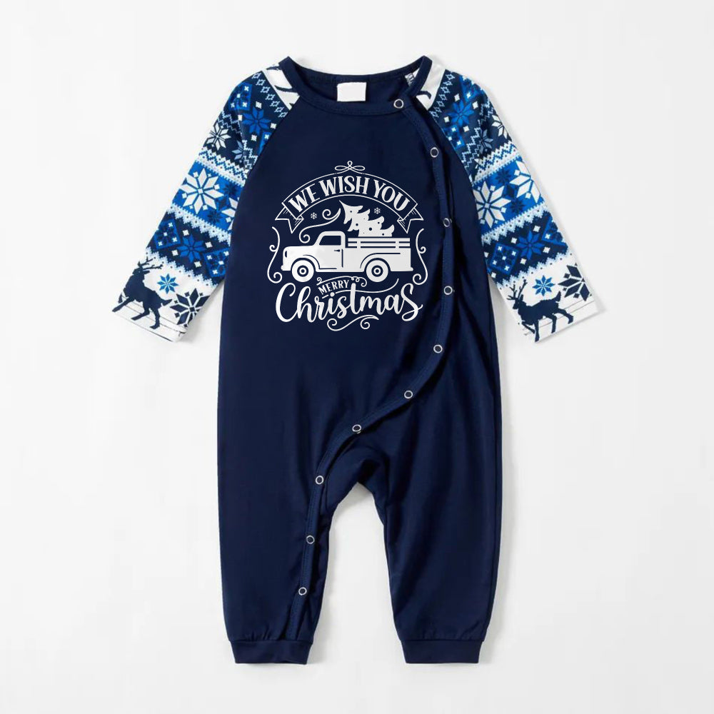 Joyful Blue Christmas Pajamas Set With Christmas Tree and Car Print