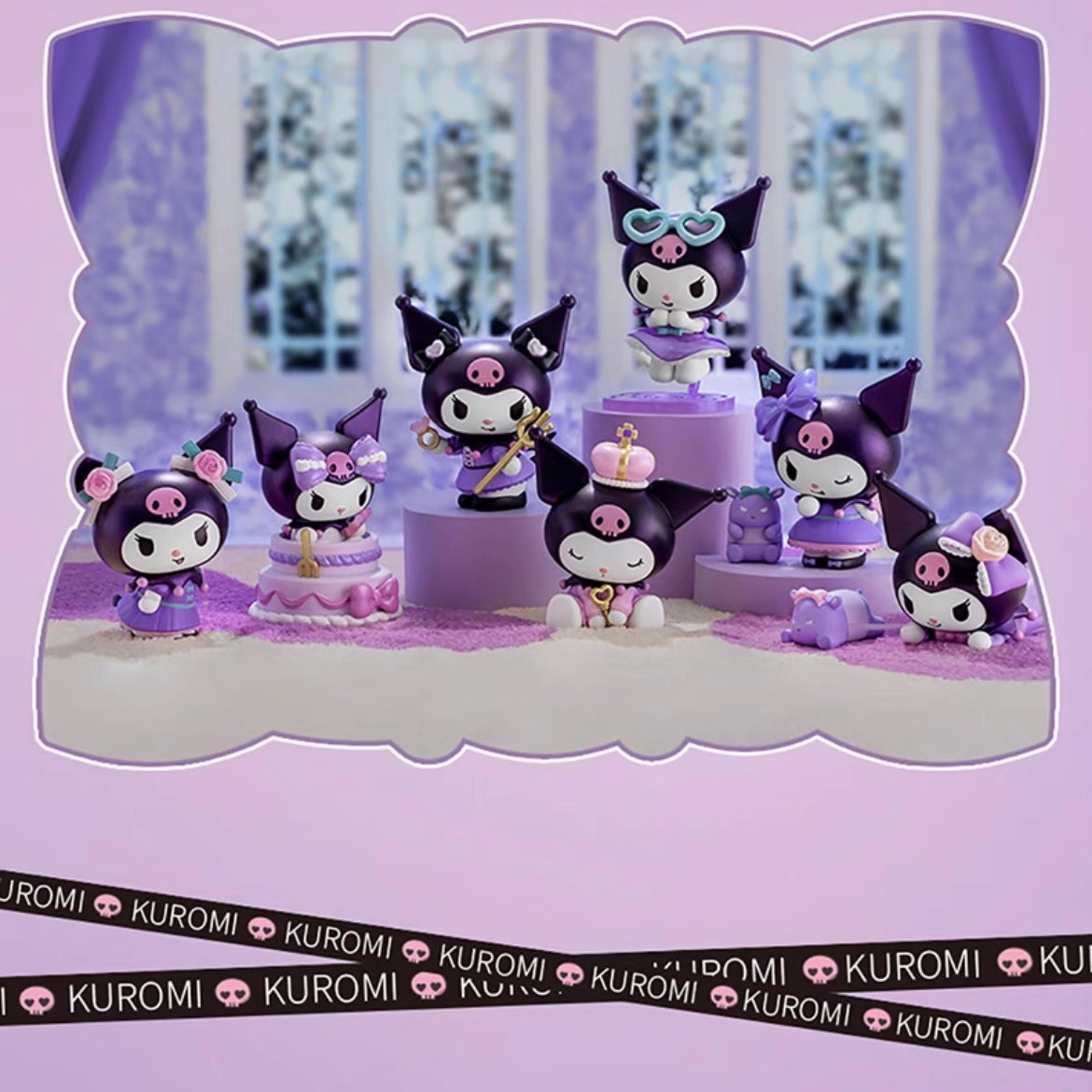 A cute party blind box collection featuring 6+1 mystery Kuromi celebrating her birthday!
