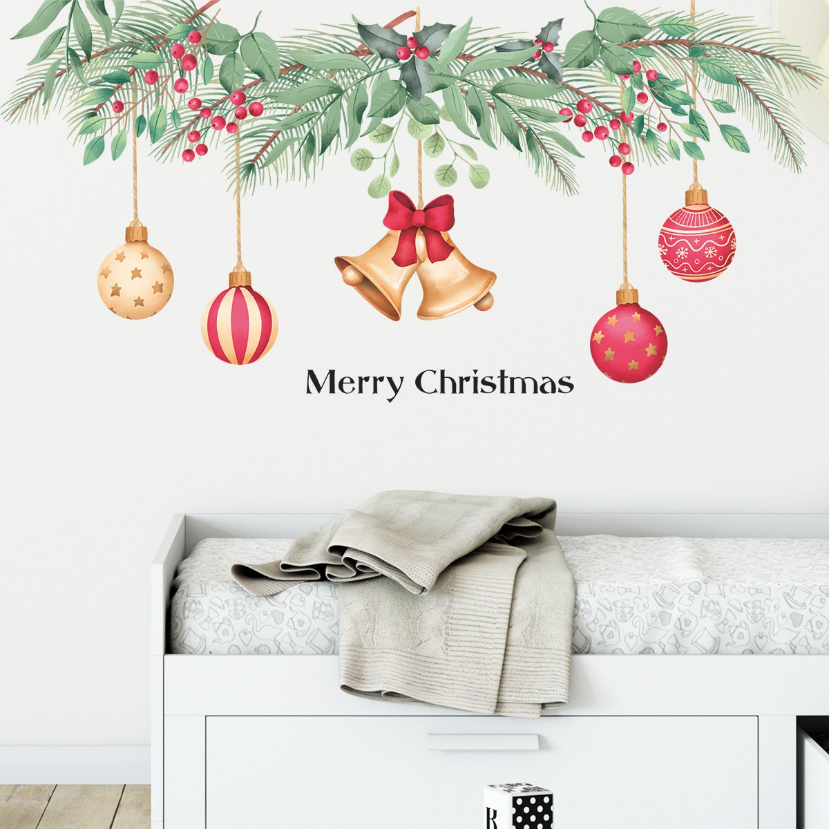Merry Christmas Bell Ball Mistletoe Wall Sticker Glass Window Door Decoration