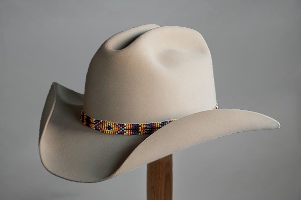 Nevada Smith Cowboy Hat – Eedrich's reproduction of the hat worn by Steve McQueen from the movie, Nevada Smith. The hat band shown is a beaded band with leather ends and a small buckle set.