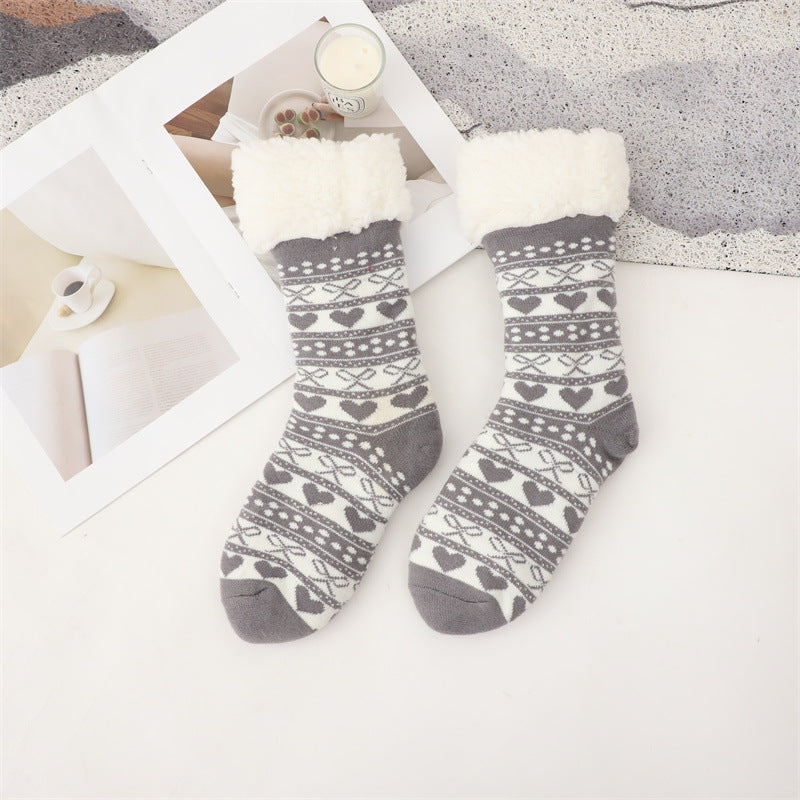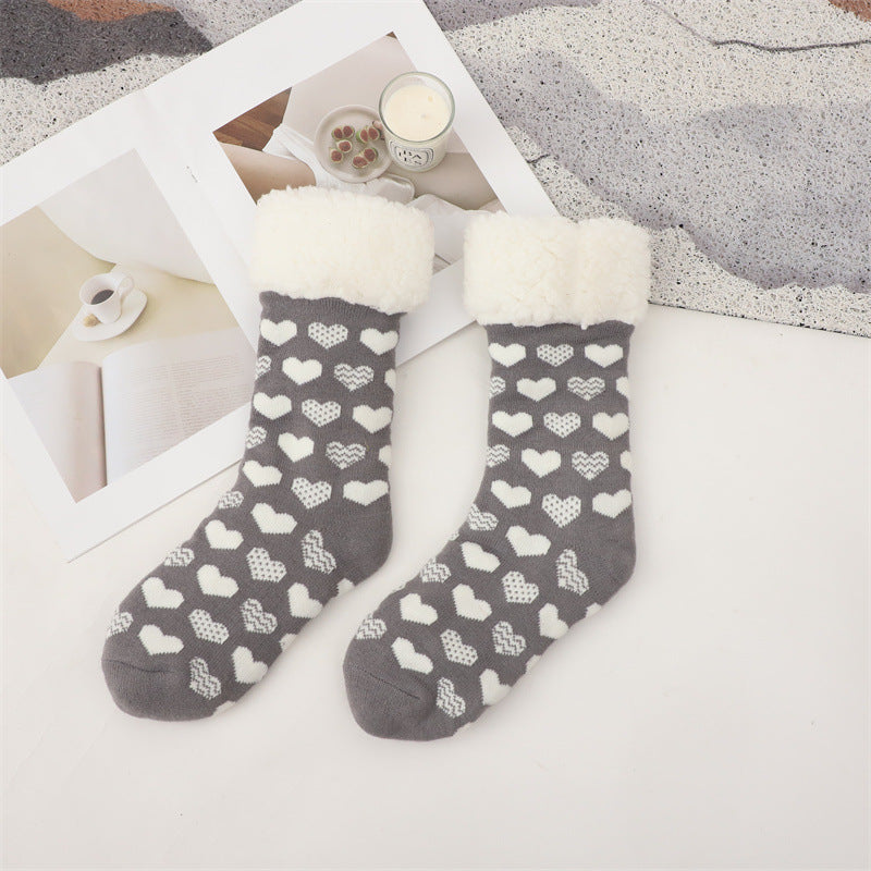 Woman's Plush Slippers Warm Chunky Warm Wool Lined With Fluffy Winter Non-Slip Socks