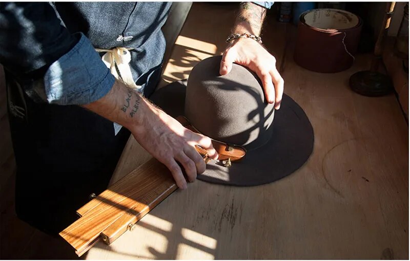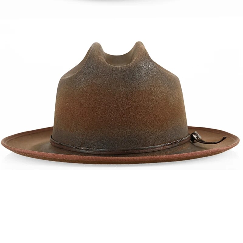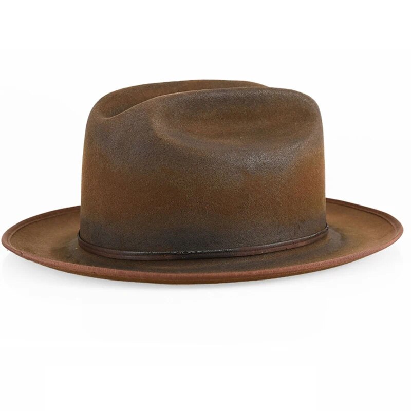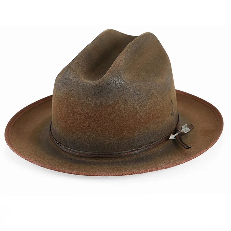 Wide Brim Fedora Hats for Men Women 100% Wool Felt Panama Rancher Hat with Lightning Logo Distressed/Burned Handmade