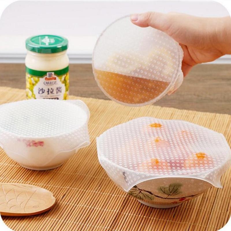 4Pcs/lot Reusable Silicone Wrap Seal Food Fresh Keeping Wrap Lid Cover Stretch Vacuum Food Wrap Kitchen Tools