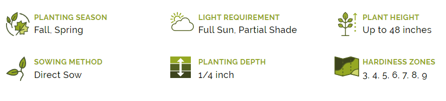 For Fall planting, make sure you plant the seeds after the first killing frost to eliminate any chance of germination. Planting in the Fall gives you a jump start on Spring blooms.